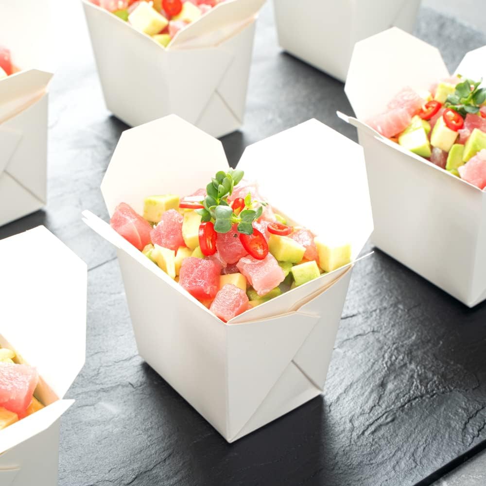 • DURABLE BUILD: Crafted from durable paper, these takeout boxes boast premium sturdiness for heavy-duty use. Keeps away grease or sauce from seeping through while eating or serving!
