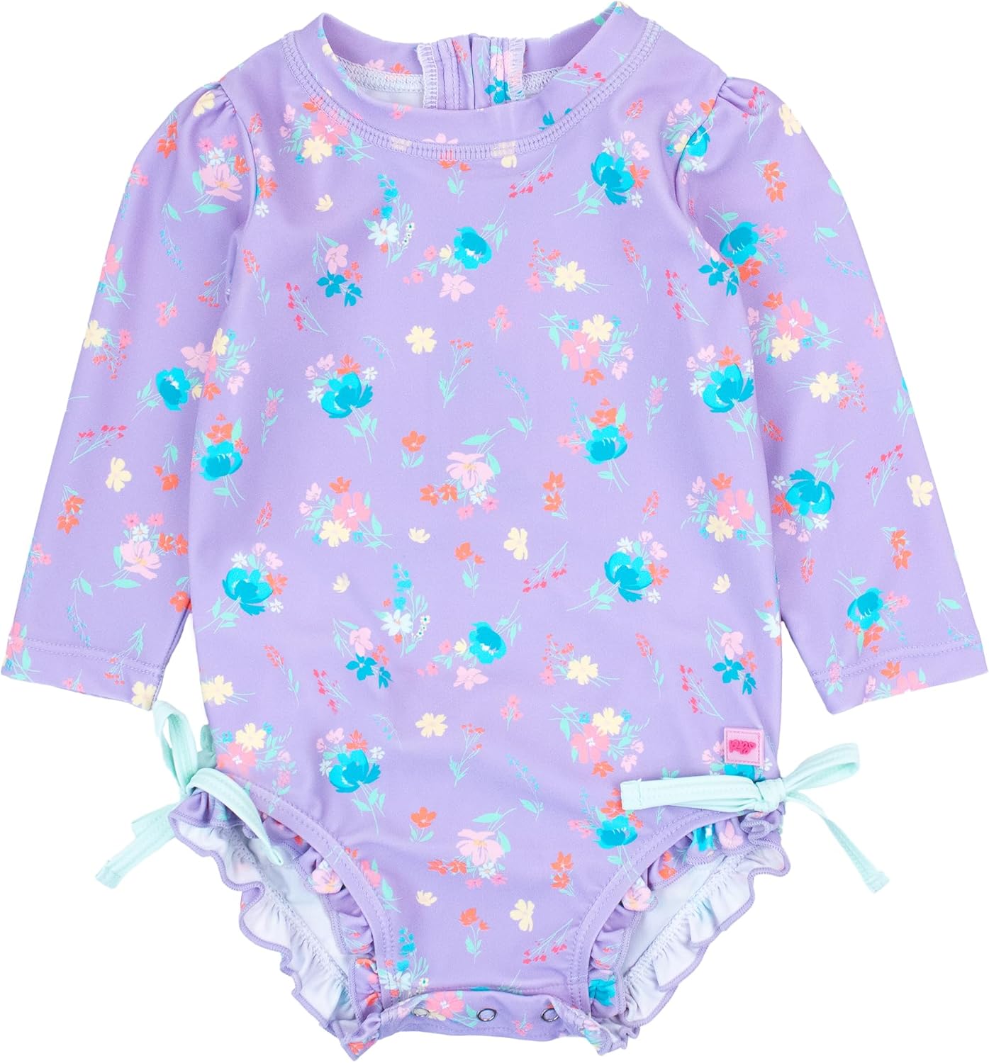 A wonderful addition to your little girl's swimwear, this Tropical Baby One Piece Rash Guard is comfort and style rolled into one. Unlined with snaps at bottom that make for easy changing. Made with sun protected fabric for all day protection and comfort.