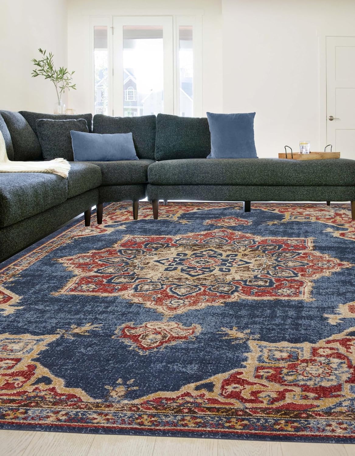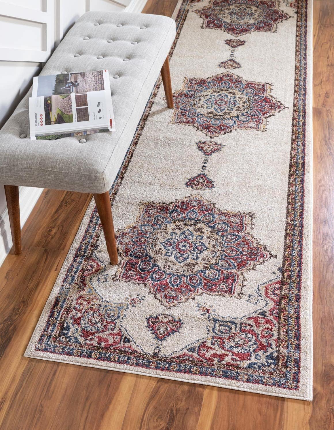 Bring traditional style into the modern era. Thanks to intricate geometric patterns, rich colors and a classic finge, the Eden Collection brings a dignified atmosphere to any room it is in. A range of deep reds, indigo blues, gorgeous golds, and soothing creams give you options no matter what you want to surround them with. The medium-height 1/2” twisted double yarn polypropylene frieze pile is soft underfoot and easy to clean, perfect for medium to low pile areas like bedrooms or living rooms where you want to show off your sophisticated style.