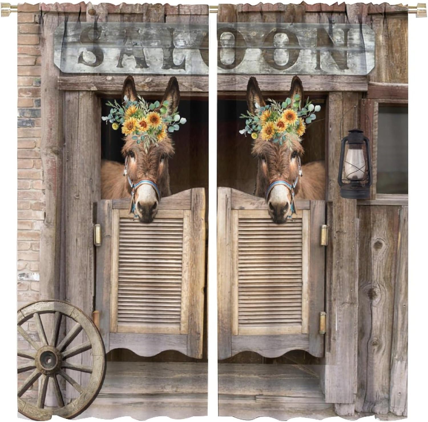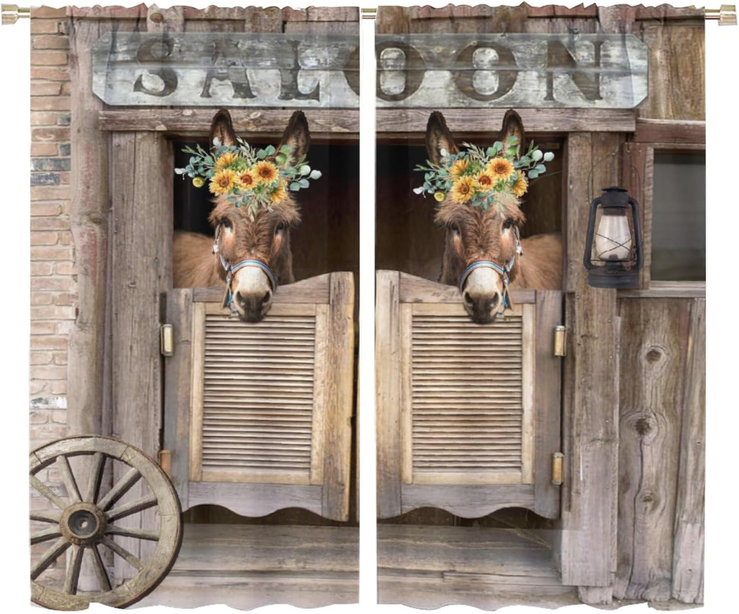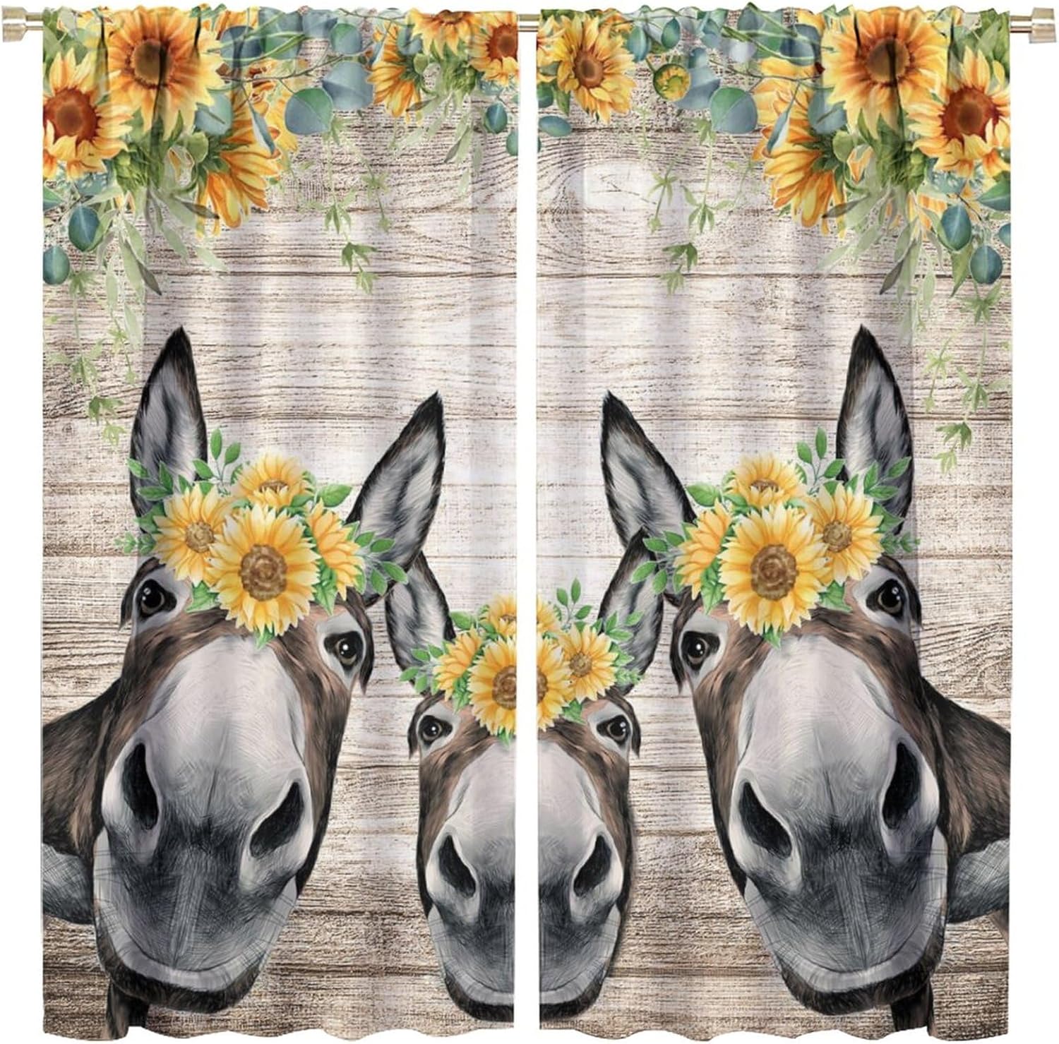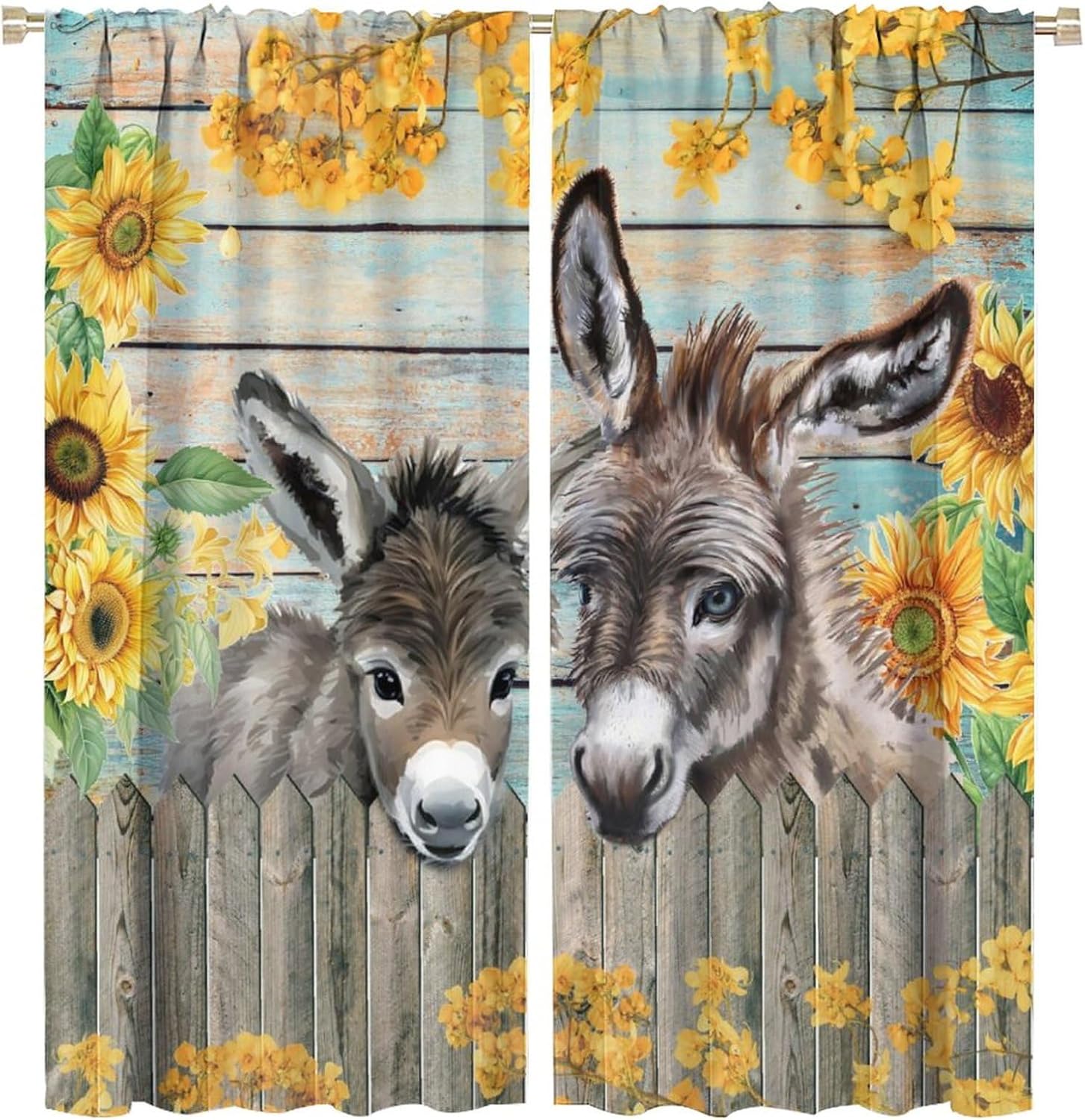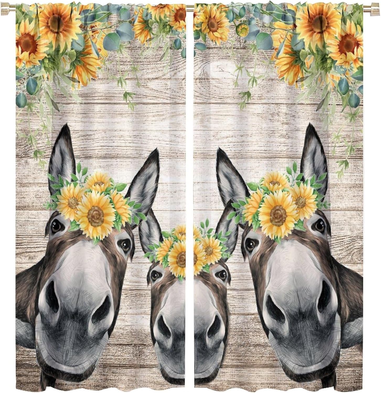 Welcome to our store. Total size: 45" L × 42" W (114cm × 107cm),Includes two pieces, each of which measures:45" length × 21" width (114cm × 53.5cm). Total size: 54" L × 42" W (137cm × 107cm),Includes two pieces, each of which measures:54" length × 21" width (68.5cm × 53.5cm). Total size: 63" L × 42" W (160cm × 107cm),Includes two pieces, each of which measures:63" length × 21" width (160cm × 53.5cm). Total size: 63" L × 55" W (160cm × 140cm),Includes two pieces, each of which measures:63" length × 27.5" width (160cm × 70cm). Total size: 63" L × 63" W (160cm × 160cm),Includes two pieces, each of which measures:63" length × 31.5" width (160cm × 80cm). Total size: 72" L × 63" W (183cm × 160cm),Includes two pieces, each of which measures:72" length × 31.5" width (183cm × 80cm). Total size: 63" L × 72" W (160cm × 183cm),Includes two pieces, each of which measures:63" length × 36" width (160cm × 91.5cm). Total size: 84" L × 84" W (214cm × 214cm),Includes two pieces, each of which measures:84" length × 42" width (214cm × 107cm). People always prefer using some decor to highlight the visual aesthetic. The brebasf Rustic Farmhouse Animals Donkey curtains is the beautiful choice for bedroom.Good and Healthy materialOur Cute Funny Watercolor Wooden Board Floral Sunflower curtain is made from a safe and durable polyester fabric ,a healthy choice for any living room.★ 95% polyester fabric.★ Easy to install. Easy to hang.★ Various style theme design, so that the bathroom is full of color and fun.Note1. Please allow a little bit of size deviation due to manual measurement.2. Due to differences in computer monitors, please allow a little bit of color difference between the picture and the object.