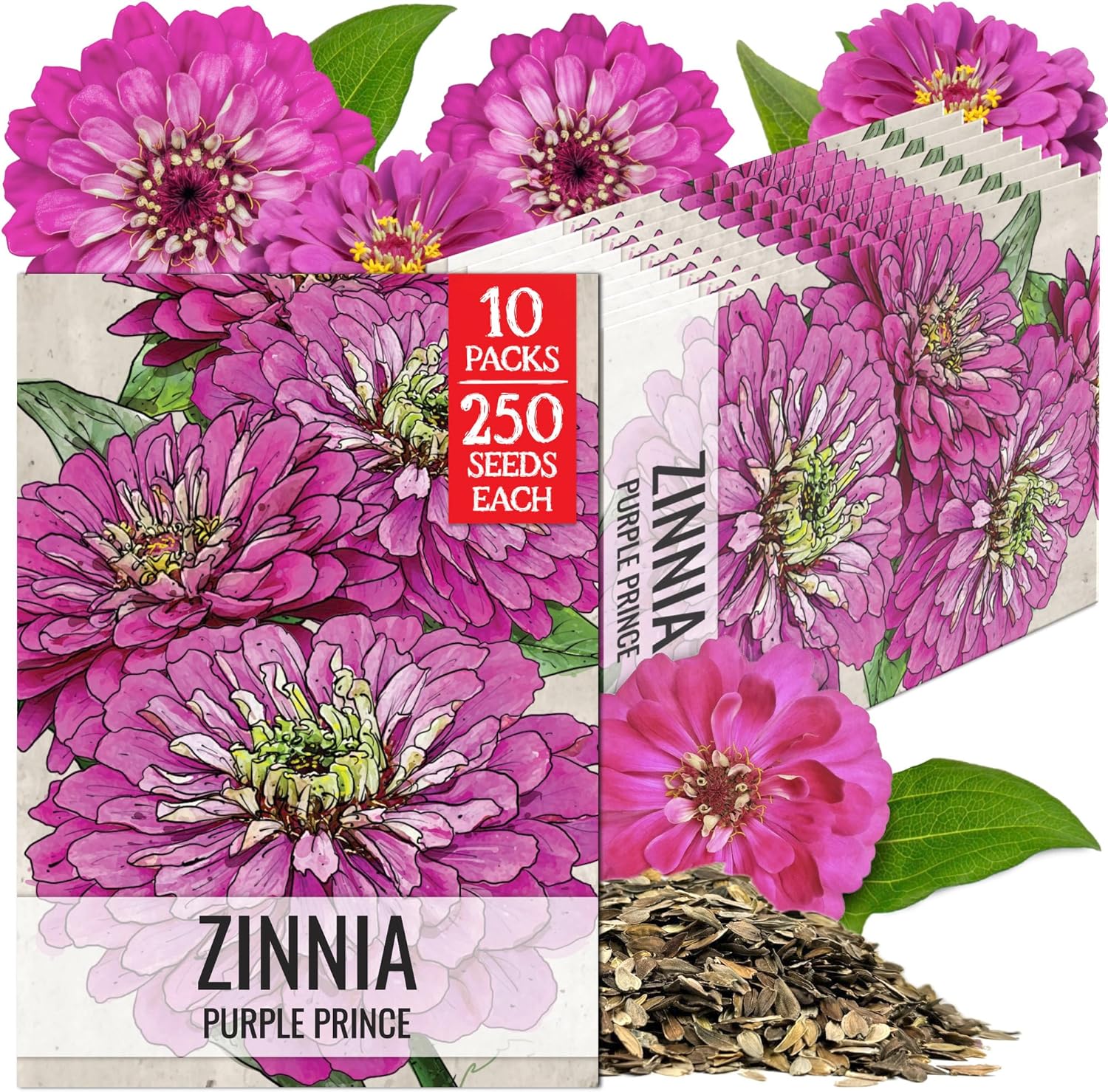 Immense, double, violet-purple flowers are 5-6” across on 3’ tall & 2’ wide plants. The overlapping petals are more loosely placed than the dahlia flowered types & the flowers themselves are flatter. Long stems make them excellent for cutting. Zinnias like full sun & rich soil. Cut faded flowers to prolong bloom time.