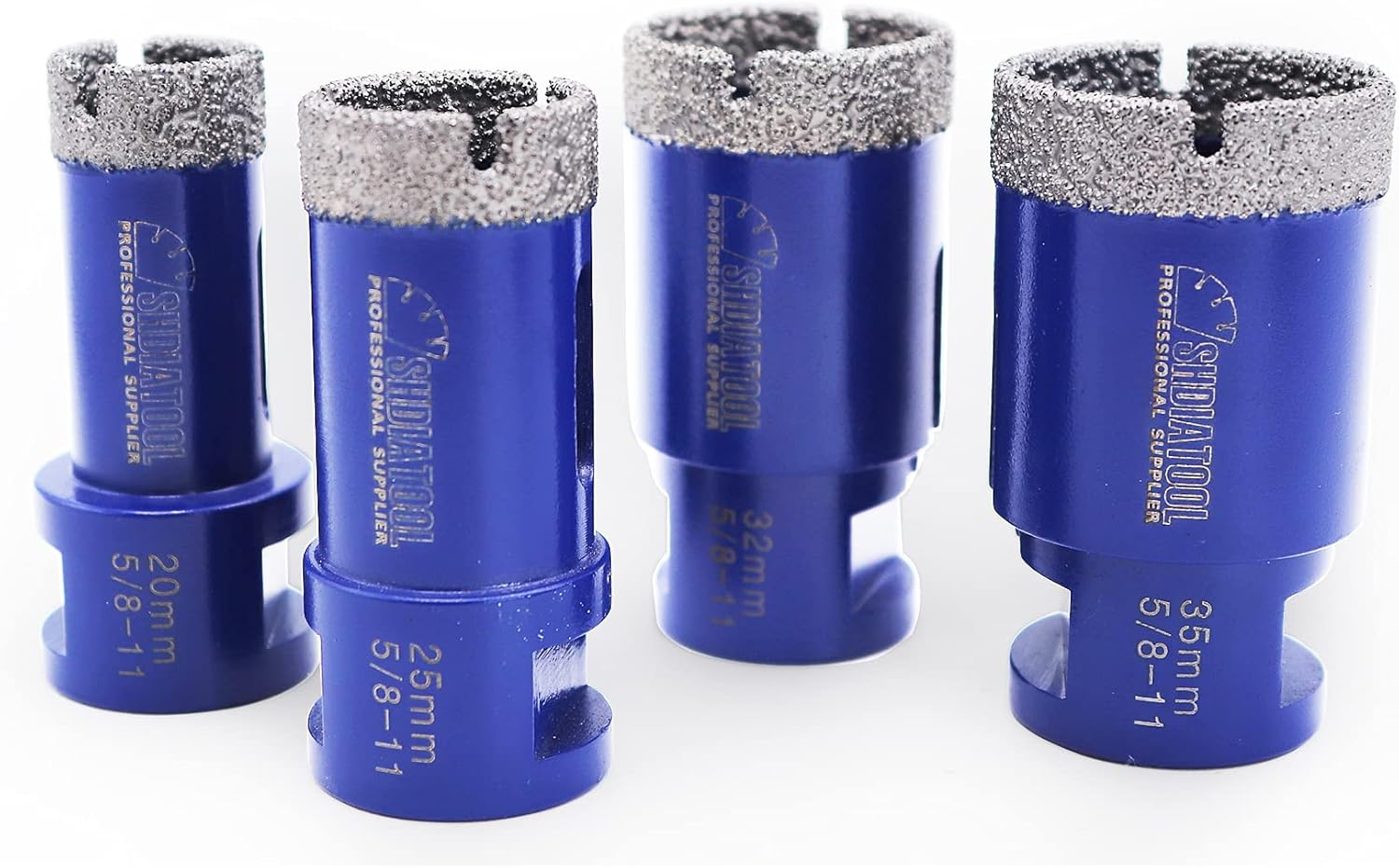 SHDIATOOL 4PCS Diamond Core Drill Bits Set Products Included: 1/4"(06mm), 5/16"(08mm), 3/8"(10mm) Diamond Drill Bits 1-3/8"(35mm) Diamond Hole Saws Total 4 Pieces Different Diamond Hole saws for Porcelain Tile Granite Marble Brick Stones