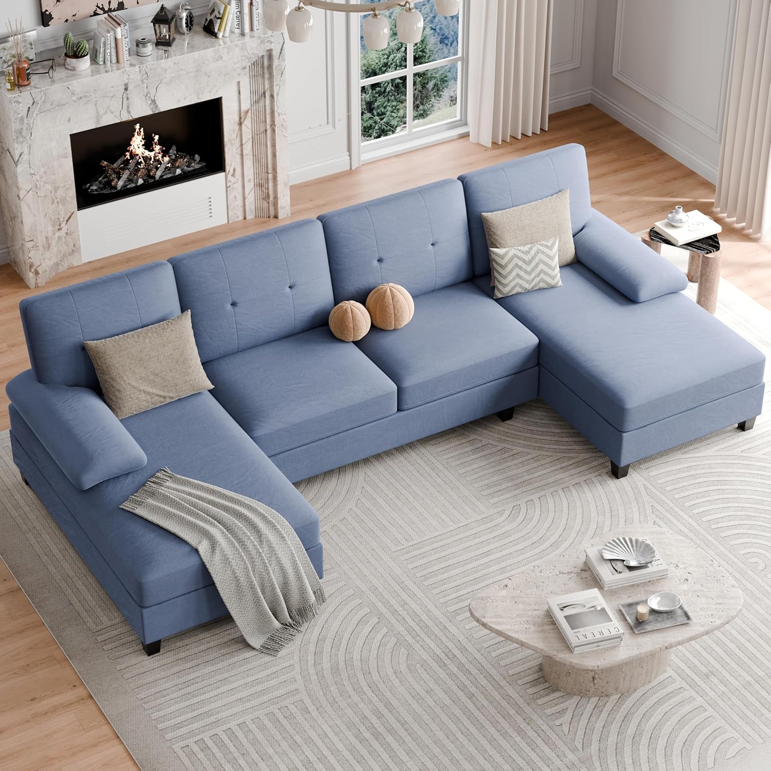 Shintenchi Convertible Sectional Sofa, U shape Sofa Couch with Chaise for Living Room. Deep Seat, we make the sofa a larger seating space. Also the memory foam filling in support you being all day comfortable. Sturdy Structure and Durability: Firmly structured with solid interior frame, and the stable connection and legs are all equipped, the sofa is sturdy enough for lasting use.