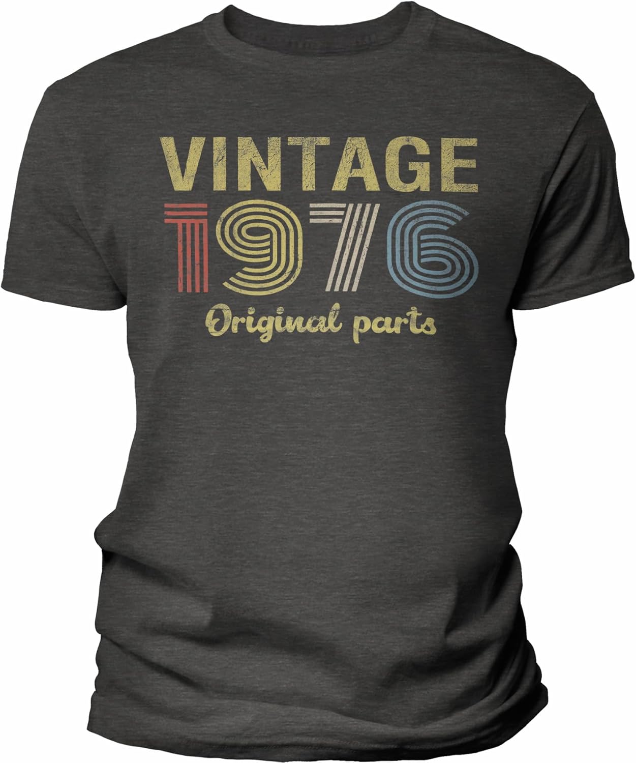 1976 50th Birthday Gifts For Men - Classic Retro 1976 - This shirt is available in two style options, a men's classic fit tee or a tapered women's fit tee. Available sizes range from Sm-5X and we offer several color options to choose from. This design was created by ShirtInvaders and custom screen printed in our Texas production facility using only the highest quality materials. Printed with an eco-friendly, softened plastisol or water based ink to create a vibrant design that is also soft to the touch and very easy to wear. Not only is it easy to wear, but it will last too! This is not just another last minute, random birthday gift idea designed for single use... ShirtInvaders branded t-shirts are created to be worn. A 50th birthday gift idea that will be loved, appreciated and actually used! A great option for a unique birthday gift, Father’s Day gift, Christmas gift or just an unexpected surprise… and with every year offered, this shirt would make a great gift for anyone. Our t-shirts work for any and all occasions. We have a large selection of dated or year specific designs and gifts to choose from with a variety of color options and sizes to fit everyone. ShirtInvaders brand designs are created with our unique vision, style, and attitude. We want to impress everyone with our quality, our creativity, our speed and our motivation... From our customers and competitors to our own designers and printers. We’re not just a t-shirt shop, we are a unique brand with a hunger for success, a motivation to impress and a drive to set new industry standards.