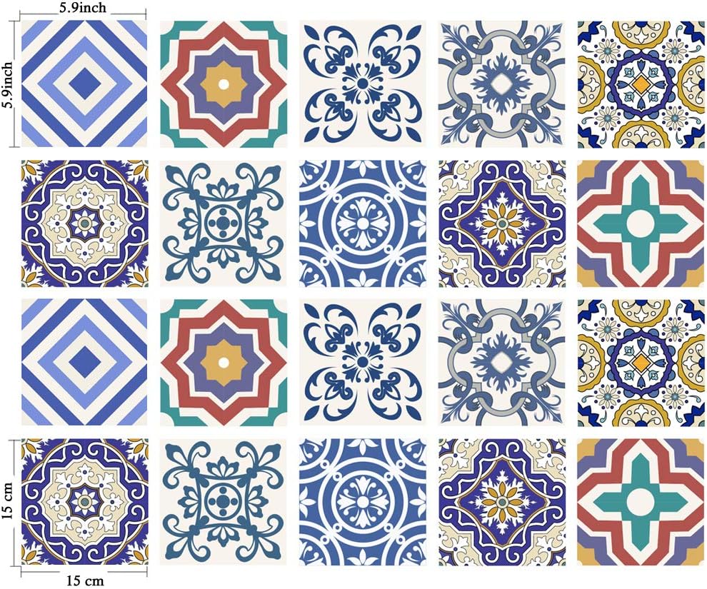 Poromoro Spanish Portuguese Azulejo Style Peel and Stick Tile Stickers Set of 20 pcs Note: * Please allow minor size deviation resulted from manual measurement. * Please note that slight color difference might occur depending on brightness of the screen or lighting. * All new(never used). Upon opening the package it might have little smell which will disappear soon @porormoro_official