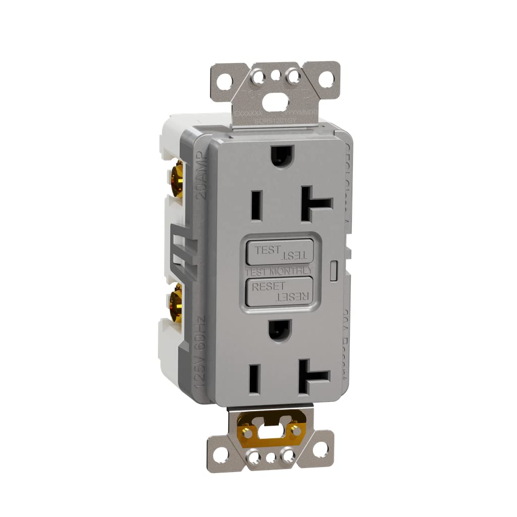 The Square D X Series 125V Tamper Resistant GFCI Duplex Decorator Receptacle with back wire clamps provides enhanced safety for kitchen and bathrooms with discrete, tamper-resistant black shutters and auto-monitoring testing to ensure it's ready to protect your devices. Featuring high impact-resistant, non-glossy, easy-to-clean thermoplastic body for attractive, long lasting operation. Complete the look with one of the Square D X Series cover plates (not provided) that easily snaps into place for a modern, flush-facing finish to your walls. And enjoy a consistent look in your room or home with the full line of Square D X Series switches, dimmers, sensors and receptacles.