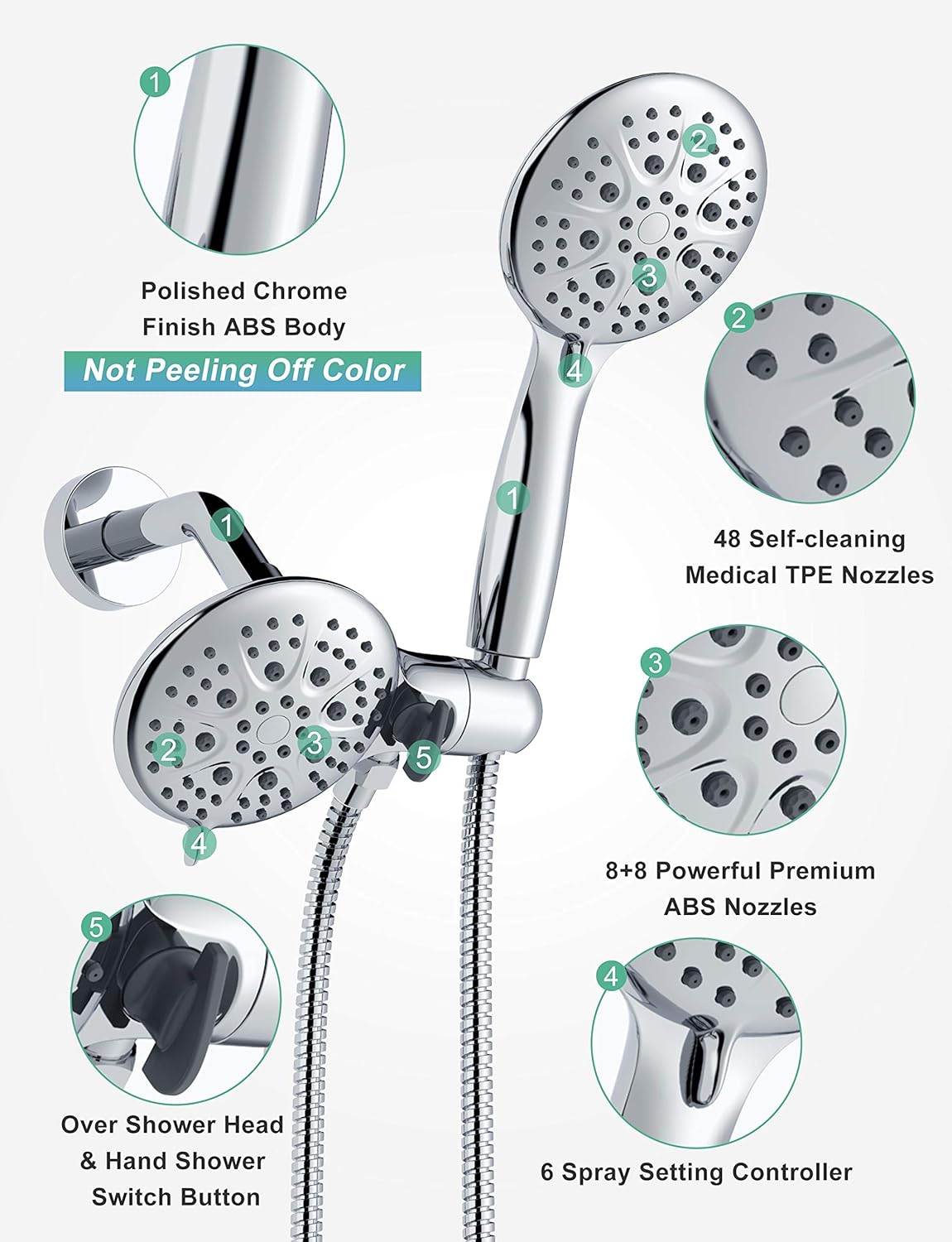 | Included Components | 71 Inch Shower Hose and Shower Arm, Handheld Shower Head, Overhead Shower Head with Bracket, Rough-in Valve and Trims, Tub Spout with Brass Adapter |