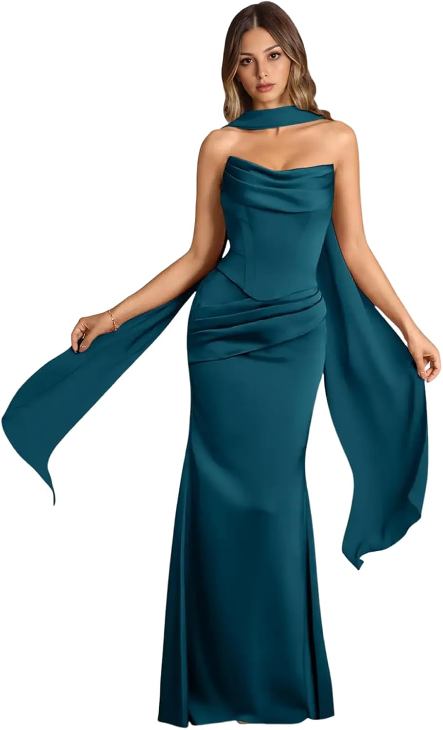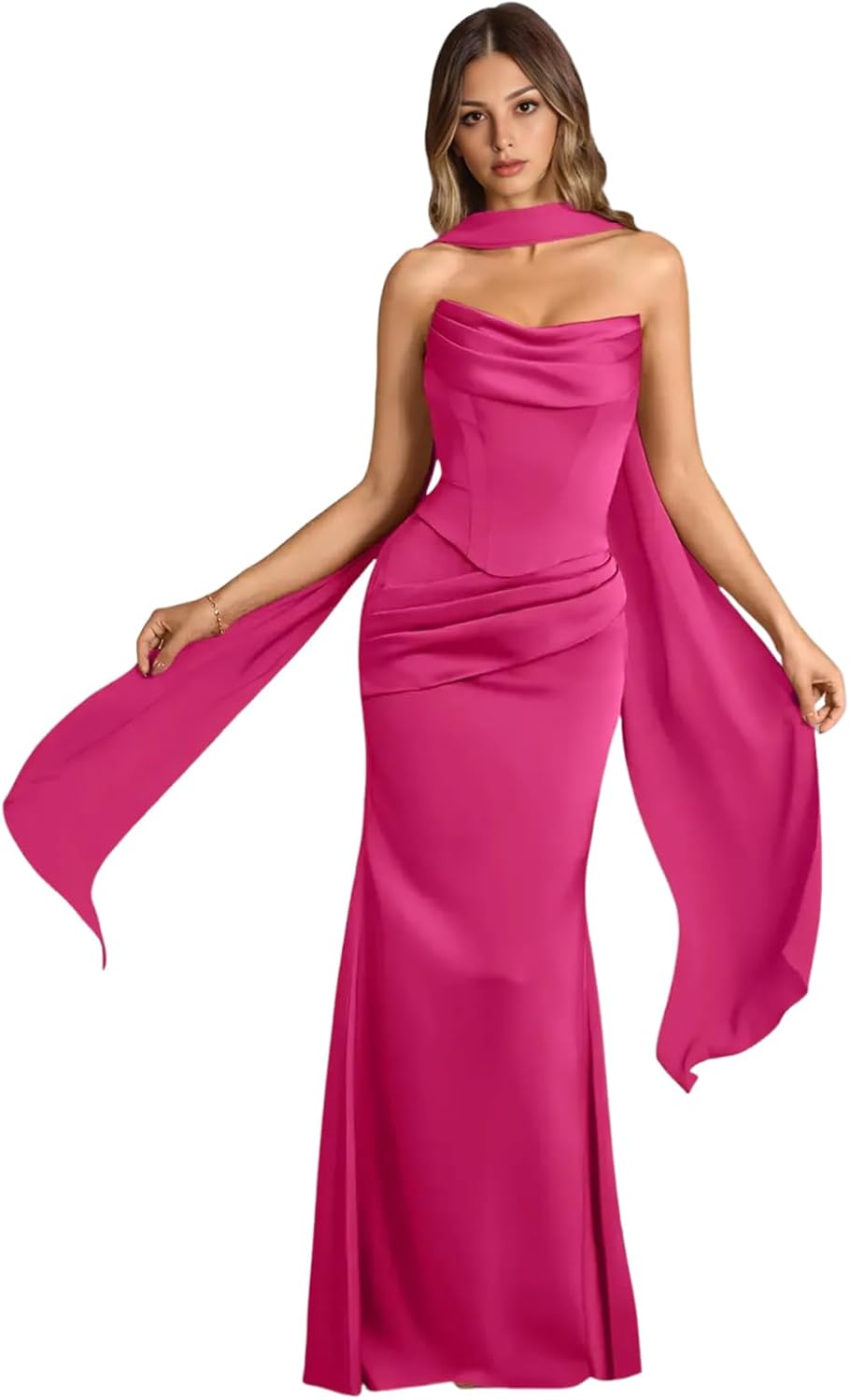 | Occasion Type | Corest Evening Dress, Mermaid Wedding Guest Dress, Prom Dress with Scarf, Satin Ball Dress, Strapless Bridesmaid Dress |