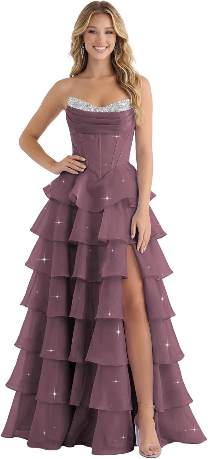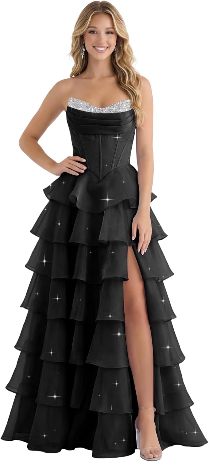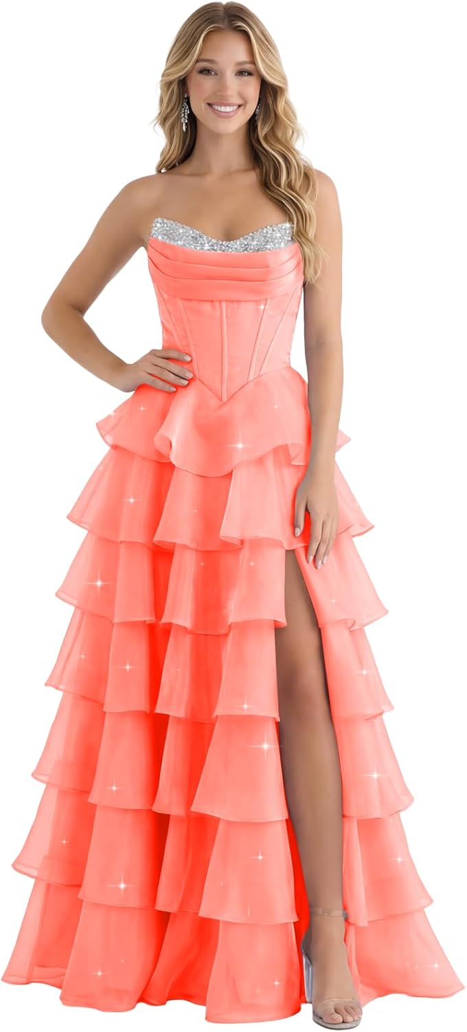 | Embellishment Feature | Corset, Mermaid, Strapless, Tiered, with Slit |