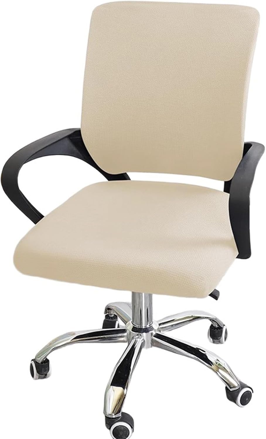 HIGHLIGHTS:Soft Polyester Spandex, comfortable and wrinkle resistant,no ironing required,stretch that recovers quickly,secure fit with sewn-in elastic hemMachine washable, easy to cleaning and washEasily installed and removedSuitbale for indoor usage, not recommended for foldable chairsCan be used for Hotel,wedding banquet, meeting, celebration, ceremony, family dining room decoration, etc.Specifications:Product name: Office Chair CoverStyle: Modern and MinimalistMaterial: 92% Polyester + 8% SpandexColors: Blue, Coffee, Light Gray, Dark Gray, Black, Orange, Khaki, Pink, Red, Green, Dark Blue, Light BlueFunction: Wear-resistant, soft and comfortable, decorativeSize rangeBack Height: 45-56cmBack Width: 42-55cmSeat Length: 38-55cmSeat Width: 38-55cmBack Thickness: 2-6cmSeat Thickness: 2-6cmSingle weight: about 270gSuitable for: all seasons(Please measure your chair before purchasing to make sure it can be installed.)Includes:1 x Back Cover1 x Seat Cover(excluding chair and any other items)Please Attention:-- Please carefully read the Size we provided in the pictures, and measure your chair size to determine if it will work.-- Due to different light and screen, the color of the item may be slightly different from the image.-- Due to manual measurement, please leave a distance of 1-2 cm. Please understand us, thank you very much.