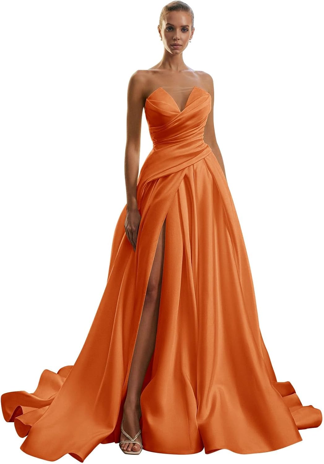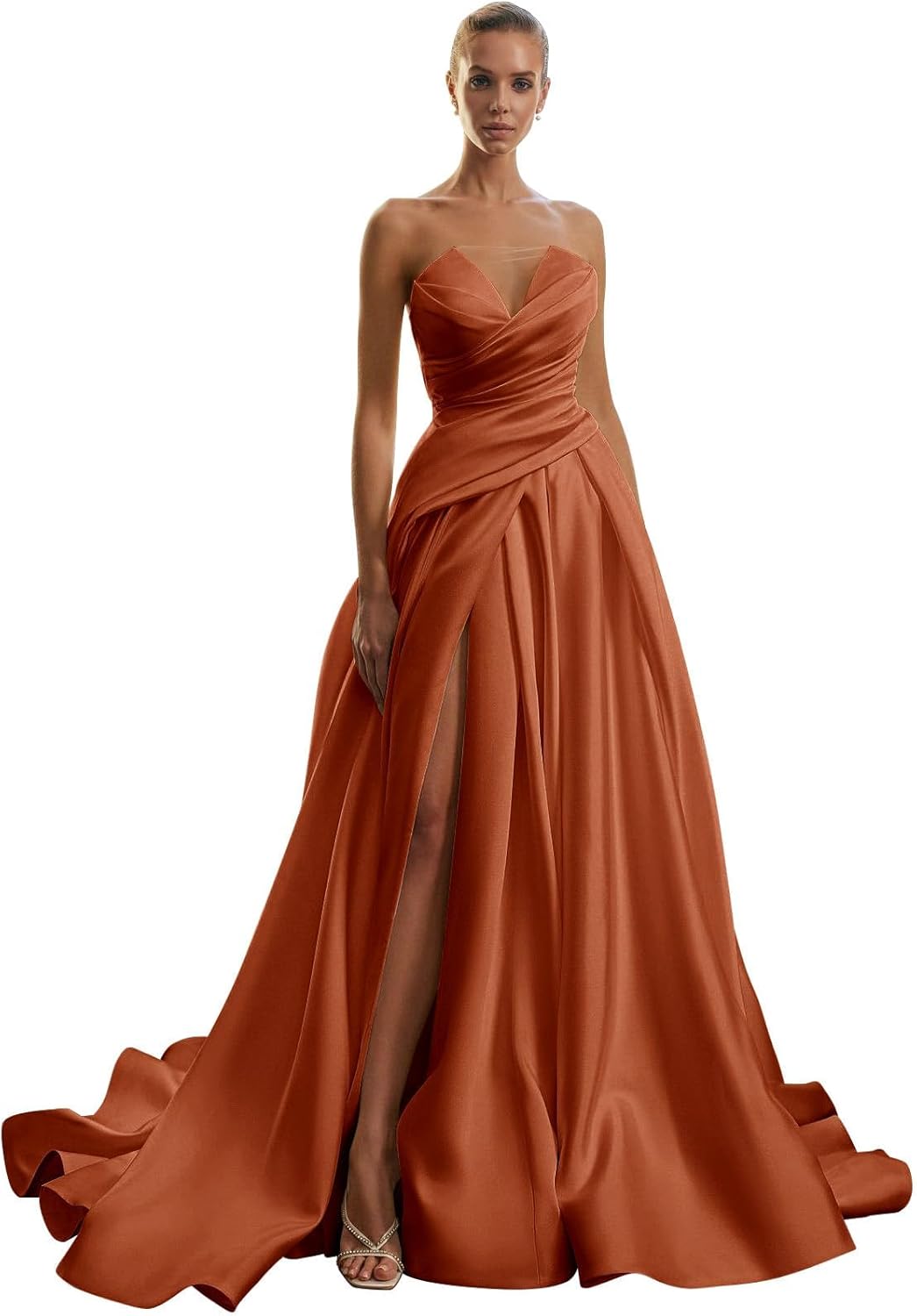 | Embellishment Feature | Ball Gown, Dusty Sage Prom Dress with Slit, Satin Formal Dress, Satin Prom Dress, Stapless Prom Dress |