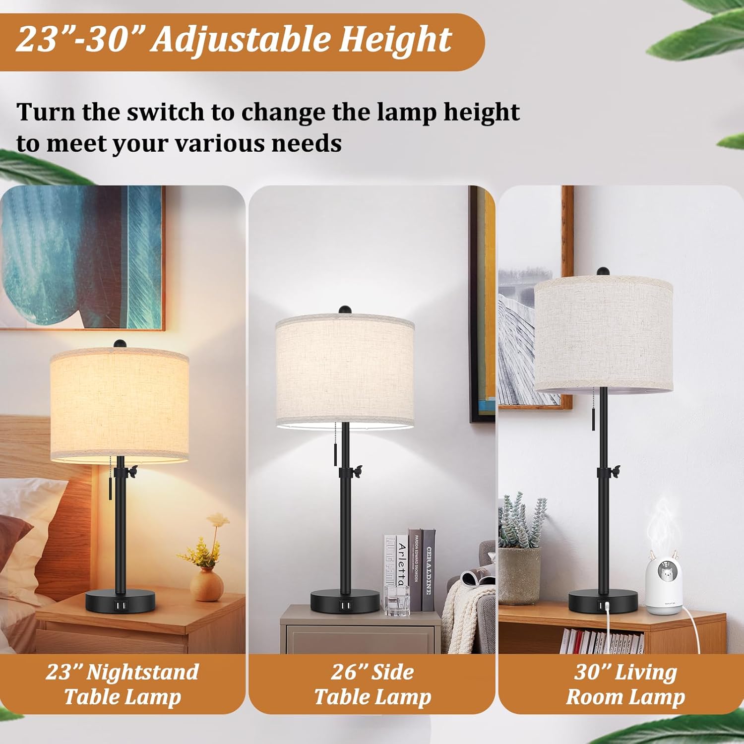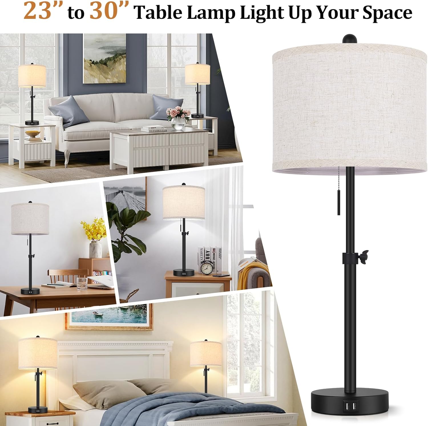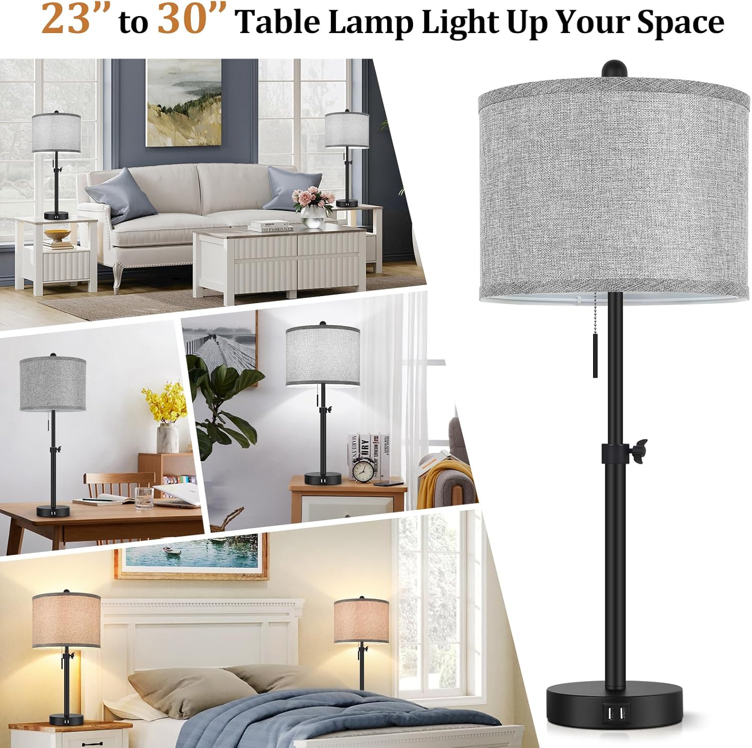 | Special Feature | Eye-caring, Easy to Install, Easy to Operate Pull Chain Switch, Dual USB Charging Ports, 23” to 30” Height Adjustable |
