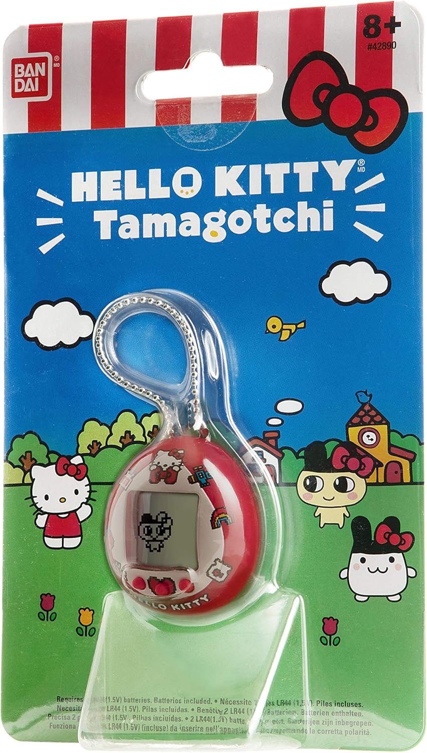 You can now raise and nurture your Tamagotchi character with the help of Hello Kitty! Hello Kitty will give your Tamagotchi character milk or apple pie, keep the space clean, and for more Hello Kitty fun, play the Piano game or Balloon game! The shell is white and red with Hello Kitty's favorite things. Ages 8+.