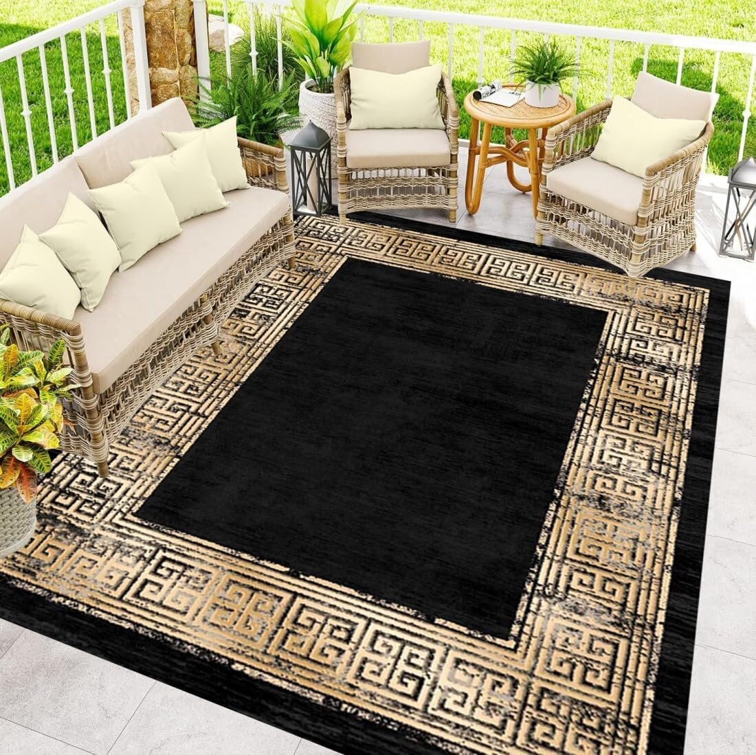 These carpets are made of materials that are waterproof, resistant to sunlight and rain, and can be used outdoors for a long time. From vintage floral and Greek key patterns to vibrant bohemian themes, various designs are suitable for any style, whether it's a comfortable terrace, chic poolside, or rural campsite. Surface dust can be easily wiped clean; Machine wash or hose rinse for easy care. Anti slip backing ensures stability during gatherings. They come in multiple sizes to choose from, blending aesthetics and durability to enhance your outdoor space while resisting harsh weather conditions. Very suitable for high flow indoor areas such as gardens, decks, and even entrances.