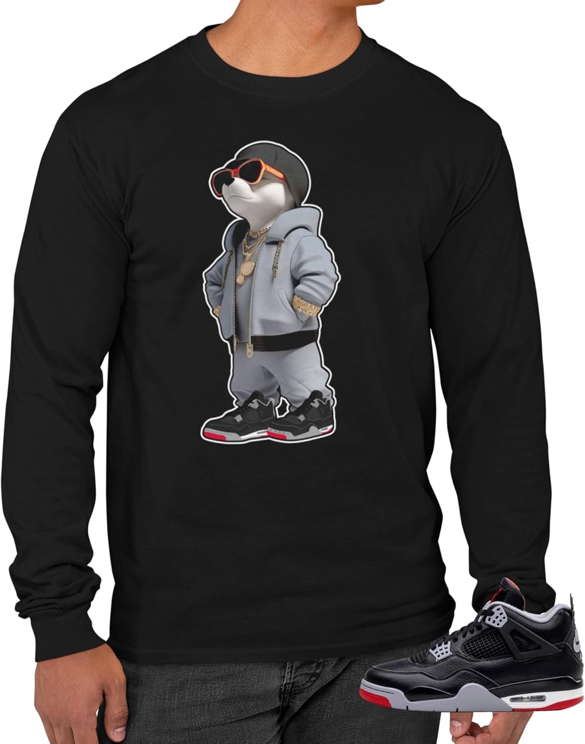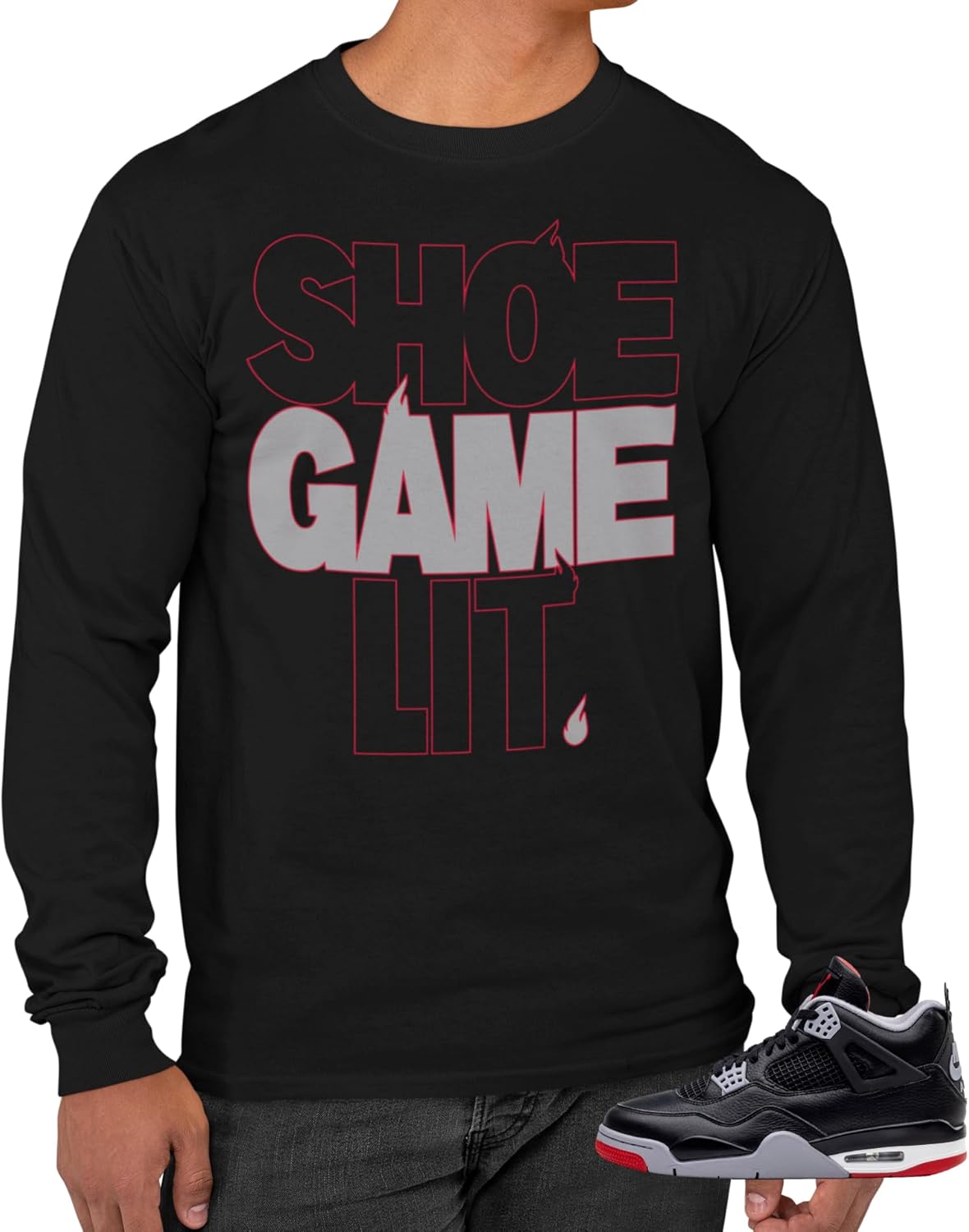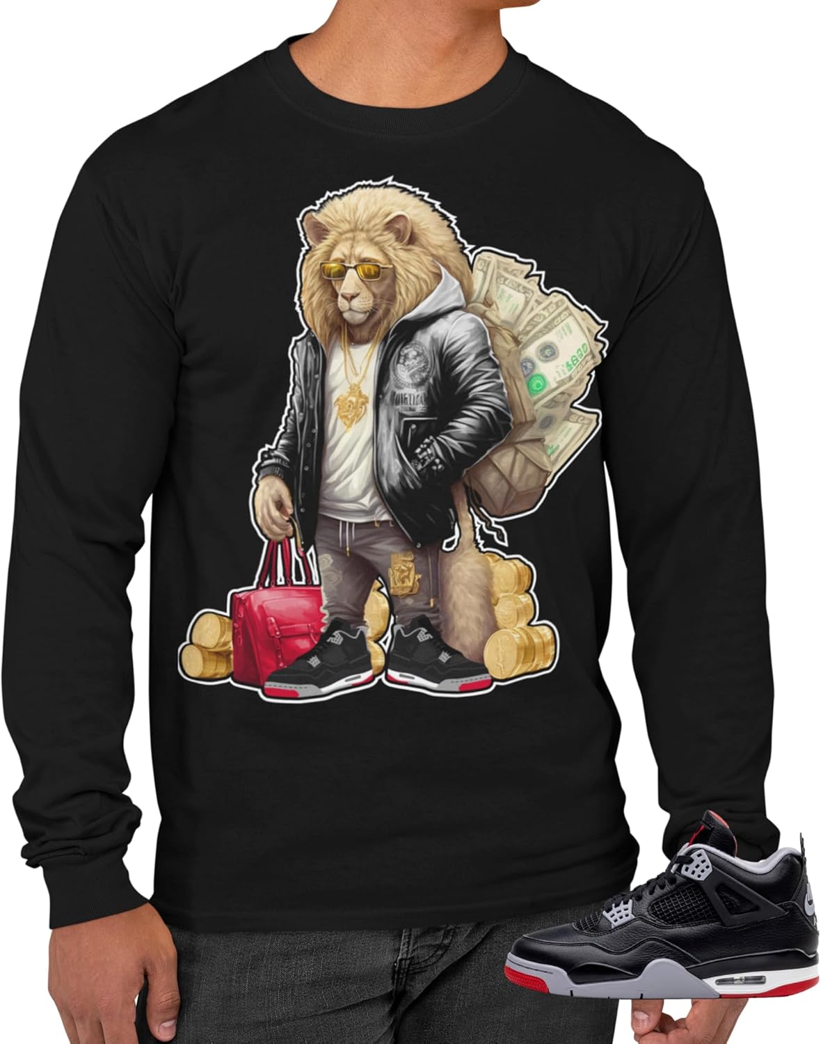 Tee Shirt To Match Jordan 4 Bred Reimagined Men's Retro Long Sleeve T-Shirt