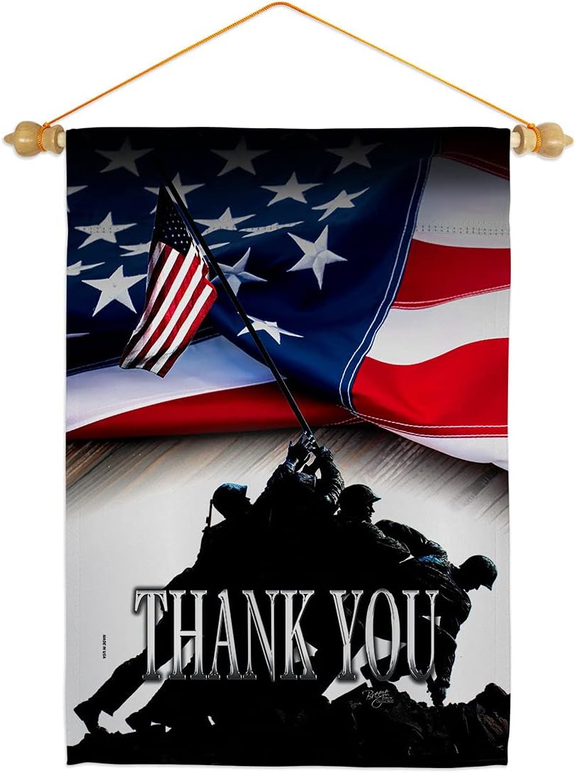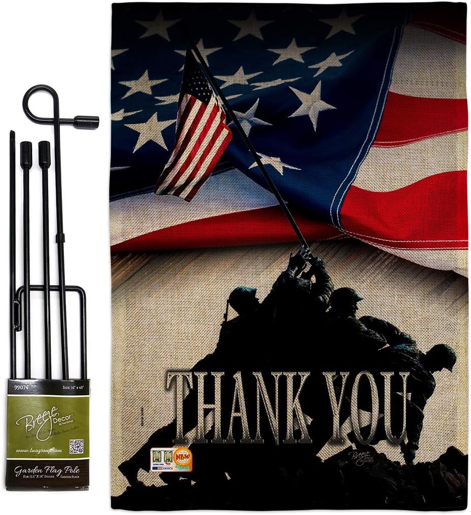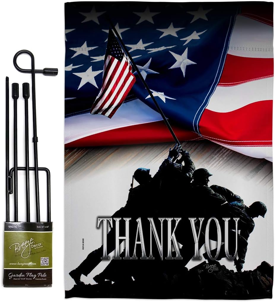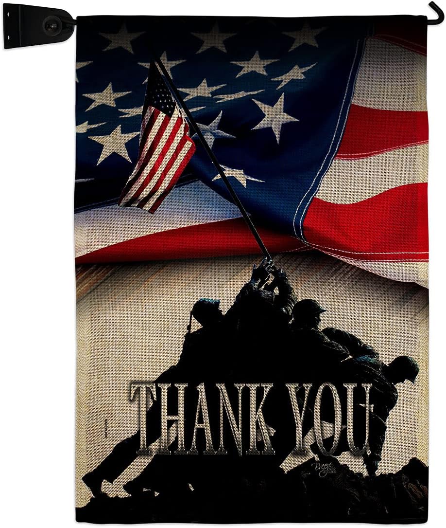 Thank You Garden Flag Set Wall Hanger Armed Forces All Branches Support Honor United State American Military Veteran Small Decorative Gift Yard House Banner Double-Sided Made In USA 13 X 18.5