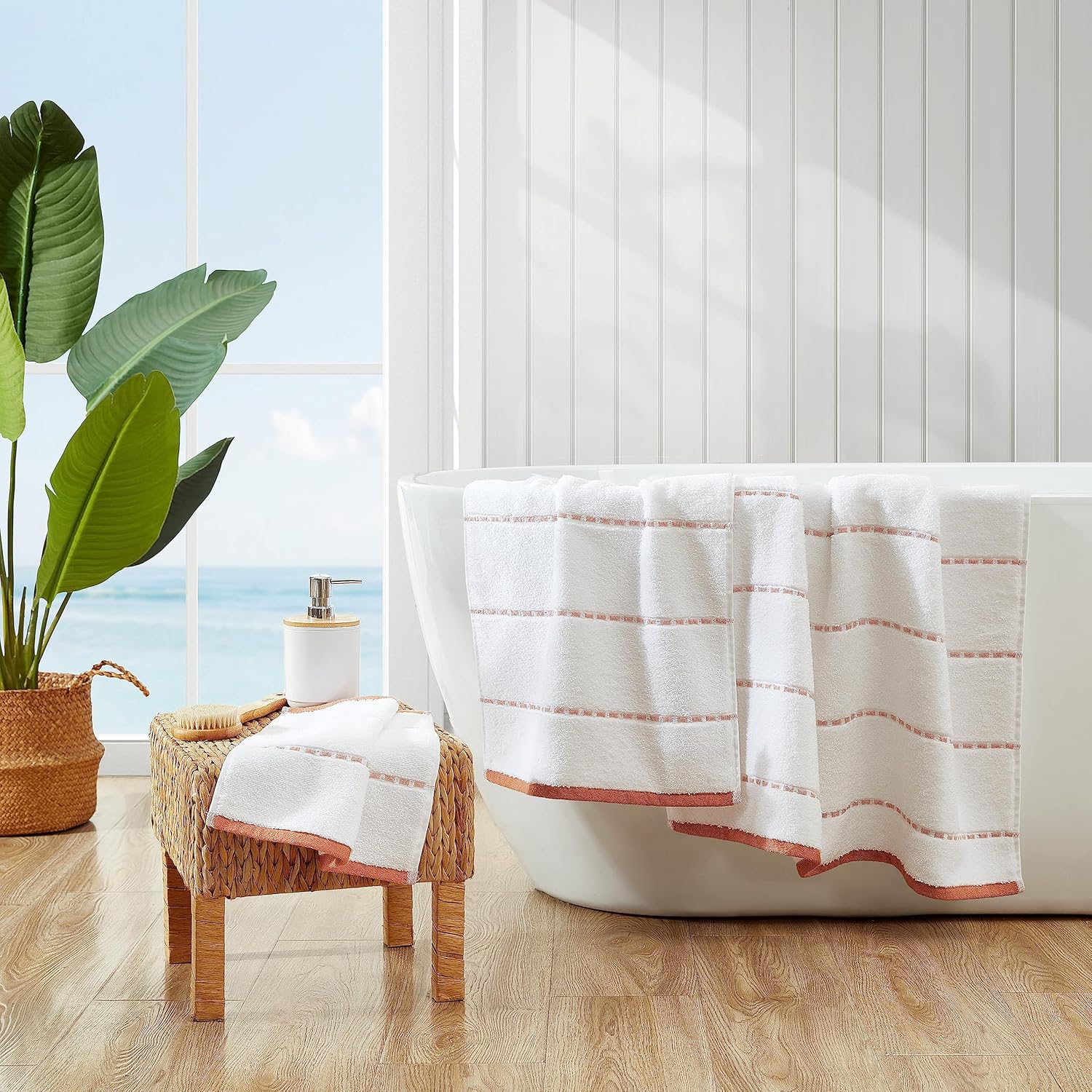 Wrap yourself in tropical comfort with the Tommy Bahama Ridley Solid 3 Piece Towel Set. Available in bathroom friendly color palette, our towels will coordinate with any bathroom décor. Constructed in high quality cotton, this perfect towel set will seamlessly bring a pop of color and style to your home. These towels have a substantial 600 GSM, durable and quick drying zero twist construction. The zero twist construction allows for these fluffy towels to be soft on the skin. Fibers stay durable after many washes. Upgrade your entire bathroom with our bundle, which comes with 1 bath towel, 1 hand towel and 1 washcloth. Towels are machine washable for easy care.