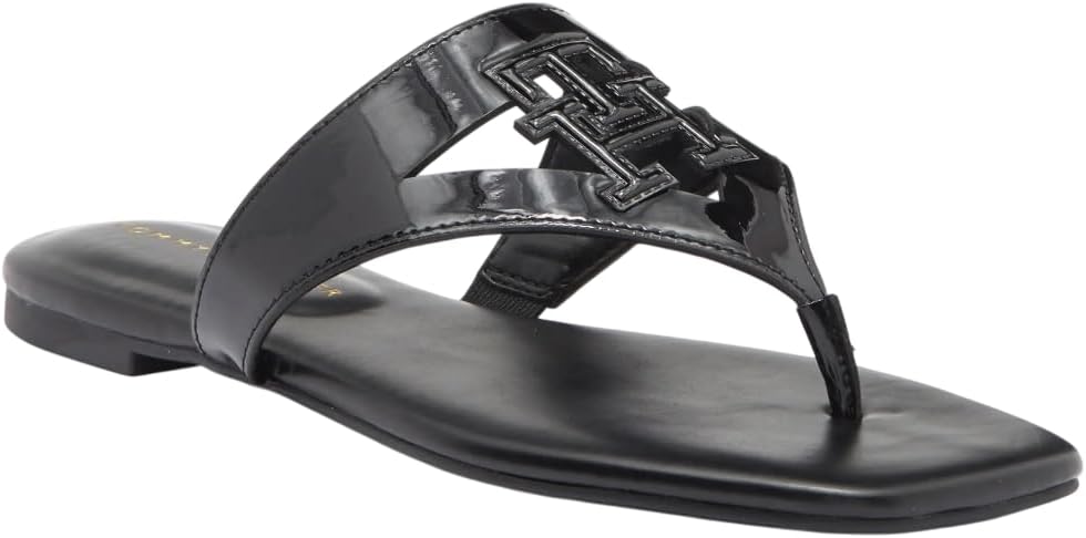 The Tommy Hilfiger Women's Tremmy with signature logo cutouts punctuate the strap of this sophisticated flat thong sandal that will complement your warm-weather looks.