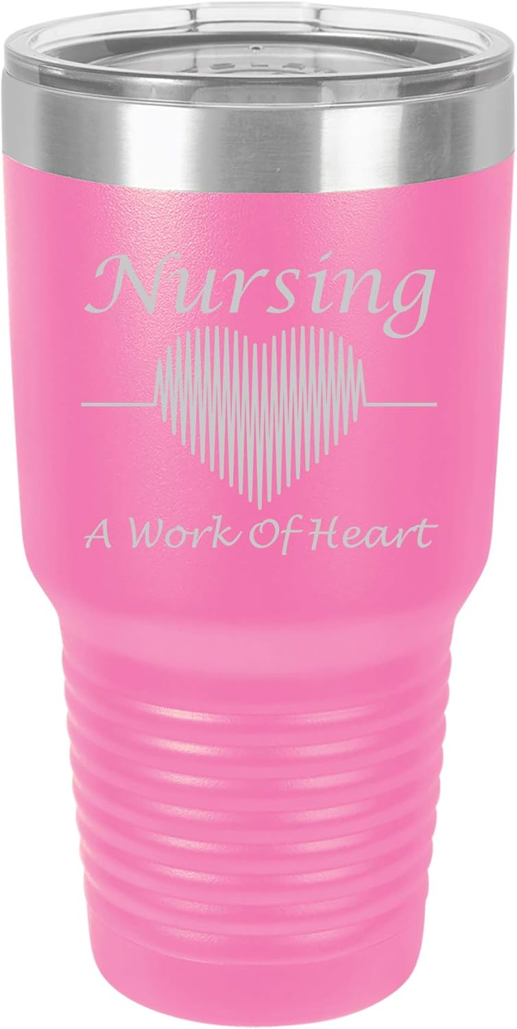 Tumbler Stainless Steel Vacuum Insulated Travel Mug Nursing A Work Of Heart Nurse
