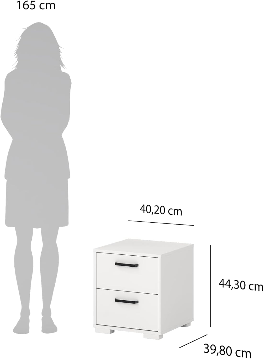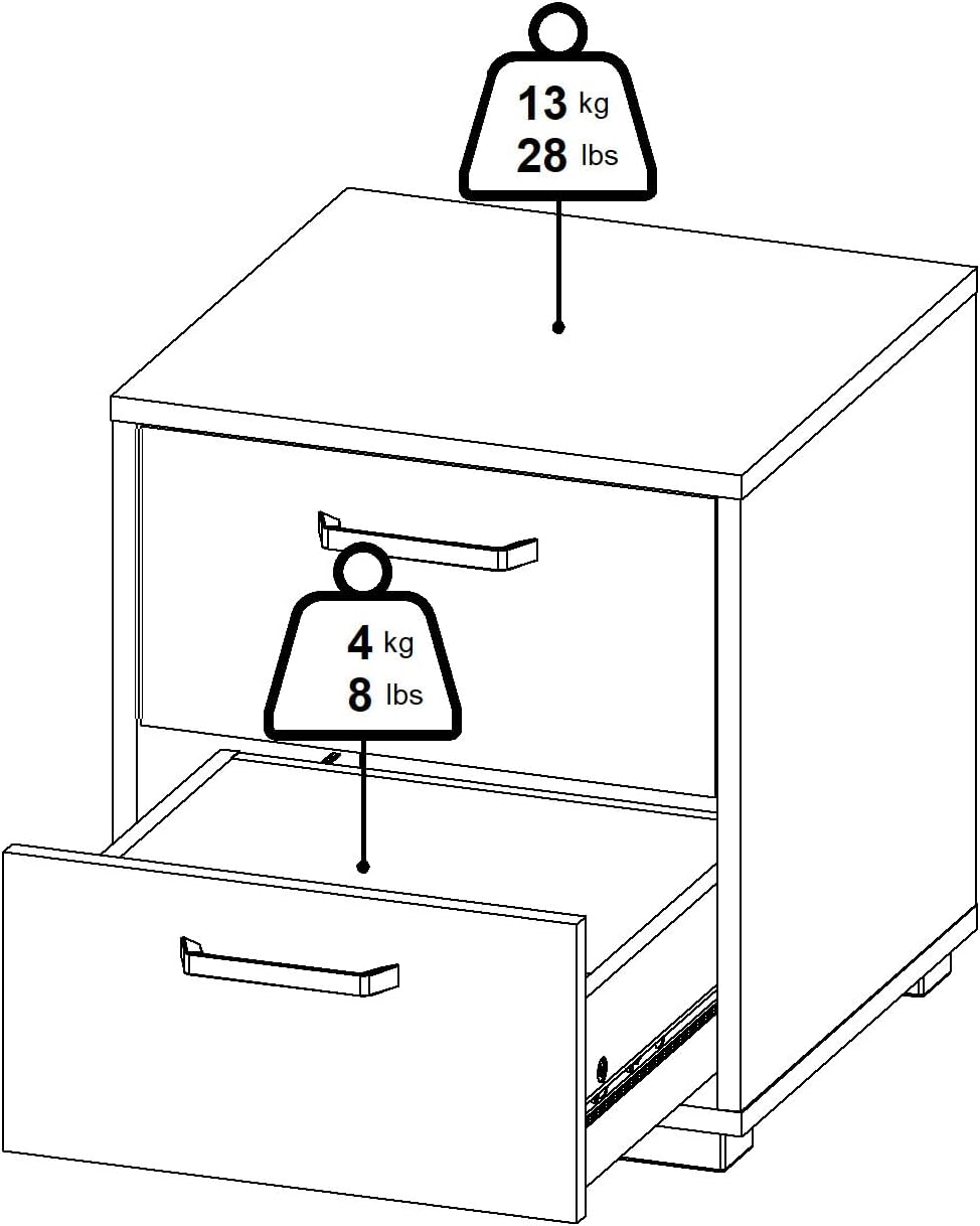 Crafted in Denmark with meticulous attention to detail, the Sofia 2-drawer nightstand by Tvilum, features clean lines and a crisp white finish that seamlessly integrates into any bedroom décor. The nightstand has two spacious drawers that offer ample storage for books, electronics, and personal items, each equipped with modern black handles that create a striking contrast against the white surface. The drawers operate on smooth metal glides for effortless access to your belongings. Whether placed beside your bed or used as an accent piece, this versatile nightstand combines form and function in a sophisticated package.