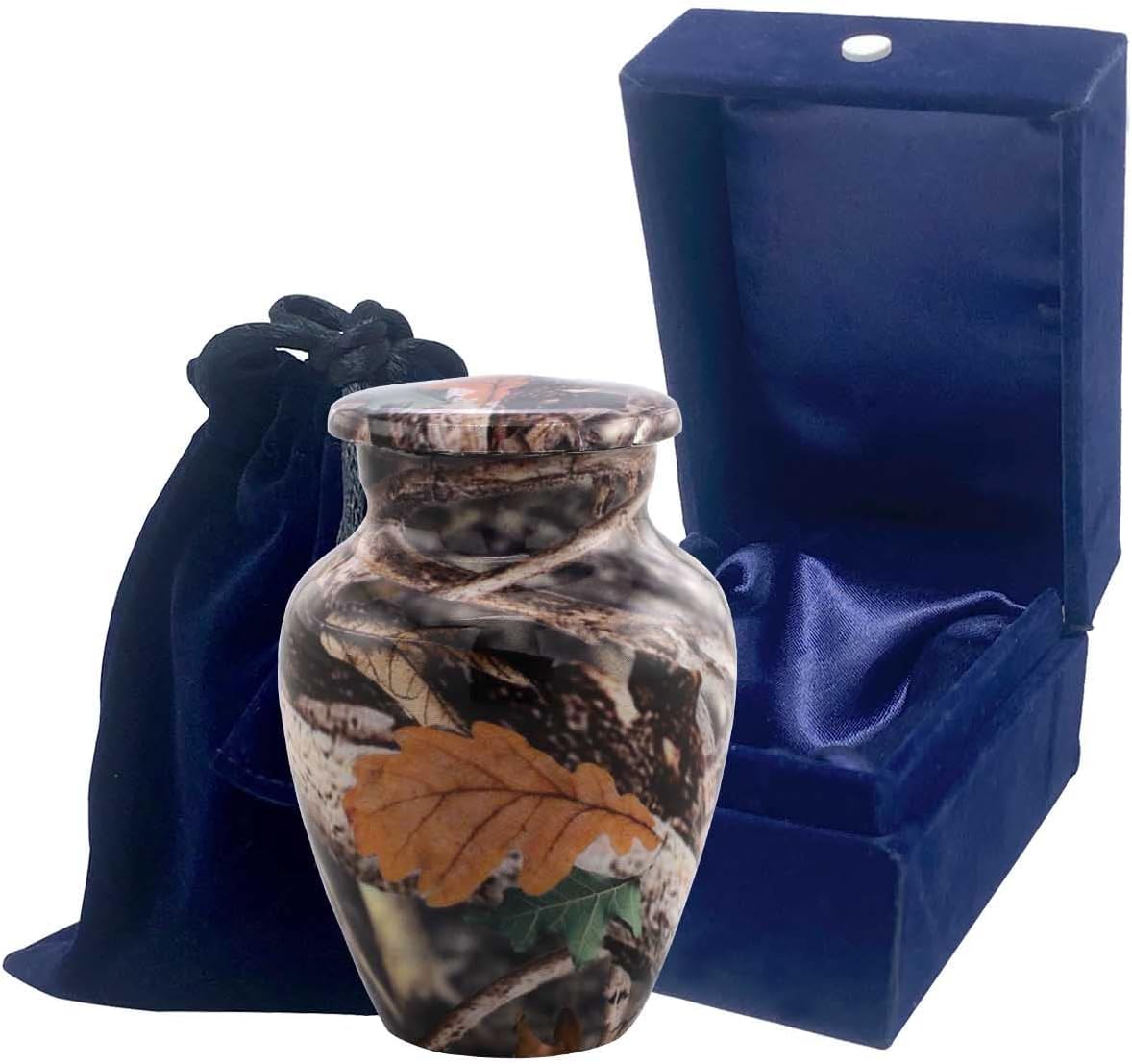 The UrbanWoods Camouflage Cremation Urn is a heartfelt tribute designed for those who felt truly alive in the outdoors. Wrapped in a realistic woodland camouflage pattern, this urn captures the quiet beauty of nature — branches, leaves, and earthy tones blending together to create a peaceful resting place for your loved one. It’s a perfect memorial for hunters, hikers, campers, and anyone who found comfort in the stillness of the forest. Crafted from durable metal and finished with rich, high-resolution artwork, this full-size urn offers both strength and serenity. The secure threaded lid ensures the ashes remain safely protected, giving families lasting peace of mind. With a generous capacity of up to 210 lbs and dimensions of 9.75” H × 6.5” W, it provides dignified storage while maintaining an elegant display presence in your home or memorial setting. Every urn includes a premium velvet storage bag and a soft felt bottom to protect surfaces. Thoughtfully made and beautifully detailed, this camouflage urn stands as a meaningful tribute — honoring a life lived close to nature and the freedom of the wild. Let this urn be a symbol of love, remembrance, and the natural beauty that guided your loved one’s journey.