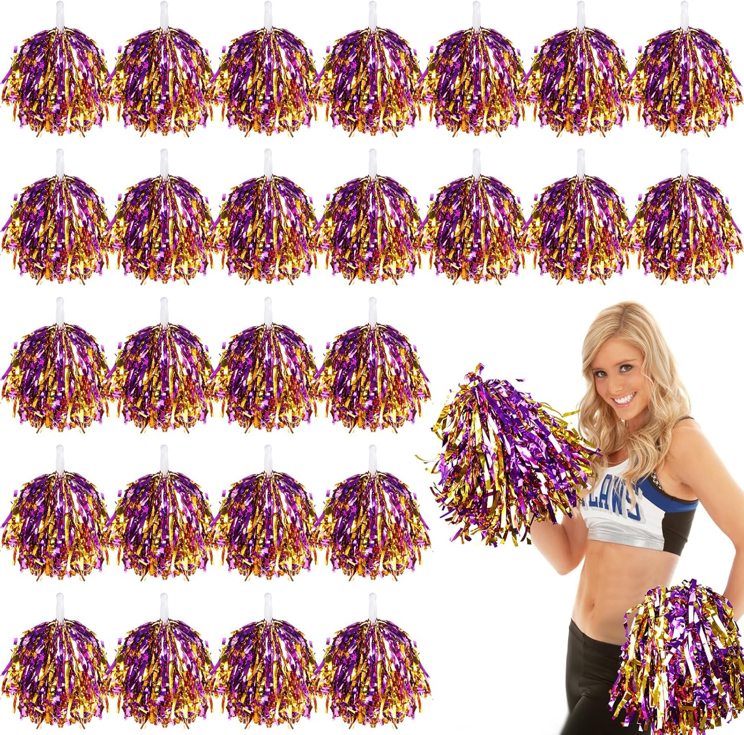 ►Outstanding Features:Our cheerleading pom poms are perfect for all sports venues. Bright green and white cheerleader pompoms can make your team stand out in a passionate sports field. Full of vitality infects the audience. The bright face color strip of the product shines in the sun or light, full shape and there will be a splash sound in the process of shaking. With these cheer pom poms, I believe you can more mobilize the scene atmosphere. Product pompoms soft dense woven, durable, light and easy to carry, you can take it to any place. It is the perfect prop for sports to ignite the atmosphere. You can take it to cheer for the event and greatly increase the atmosphere of joy and excitement. ►Specifications:-Material: PET -Color:green and white -Size: pom poms 9.84 inch/25 cm, handle 3.35 inches/8.5 cm, the total length 13.19 inch/33.5 cm ►Package Includes:48 x green and white cheerleading pom poms►Warm Tips:1.Please allow slight size errors due to manual measurement. 2.Bright silk will have a little bit of silk loss, silk is the residue in the production process, the product will not be pulled off. The material is gold plated, it will have a little taste, please consider before buying. 3.If you have any questions, please contact us at any time, we will provide you with best solution.