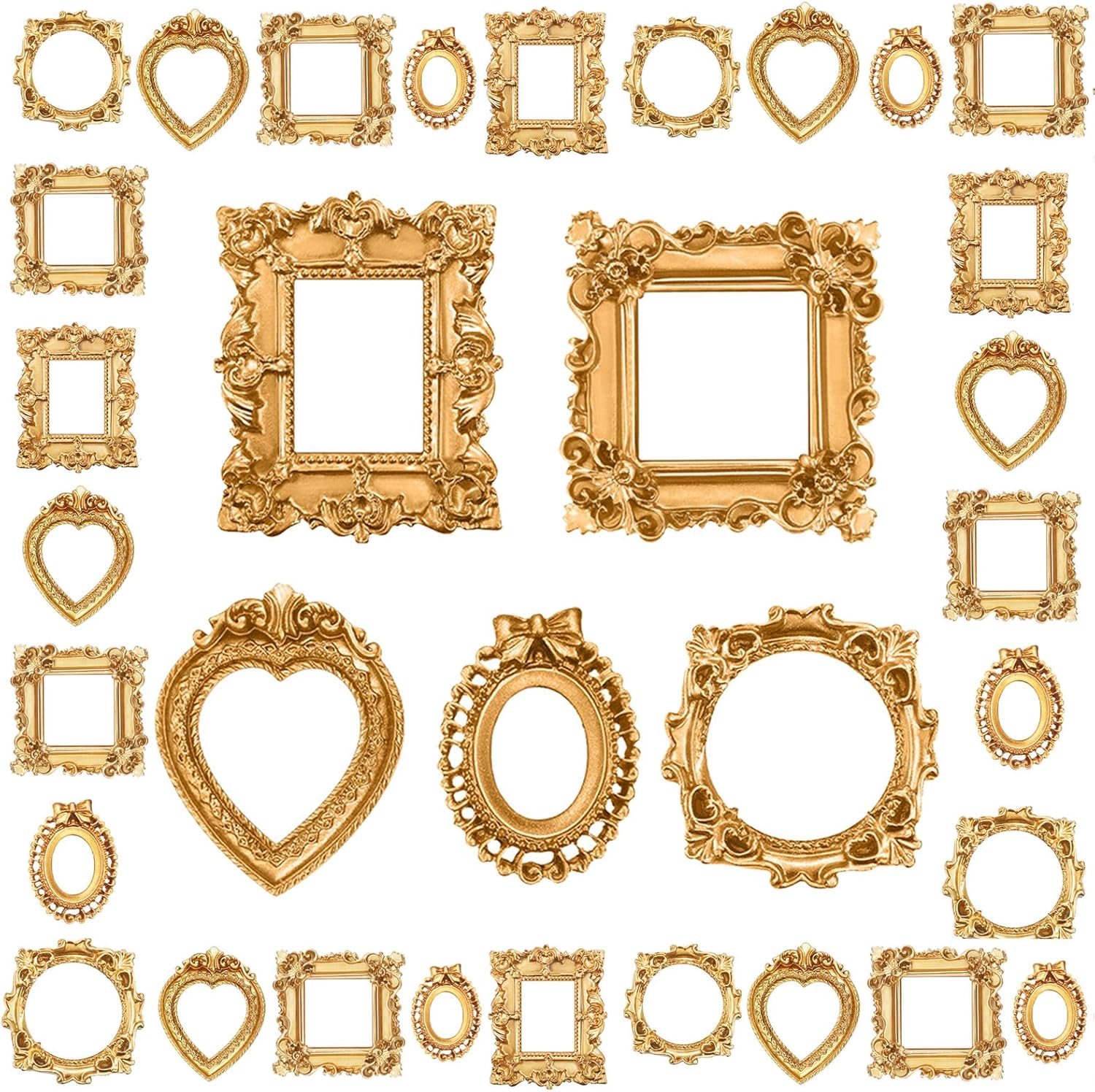 Features: Enjoy happiness: You can invite your family or friends to complete DIY projects with these small picture frames, to inspire creativity and exercise DIY skills, reduce the time you would spend on your mobile phone, enjoy the fun of crafting. Jewelry display: These vintage picture frames are novel in appearance and ornate in style, which can pair with your jewelry rings, necklaces, bracelets, earrings and so on to achieve a harmonious presenting. Specifications: Material: resin Color: gold Size: approx. 2.16 x 2.16 inches, 2.16 x 1.77 inches, 1.77 x 1.77 inches, 1.88 x 1.57 inches and 1.5 x 1.1 inches Package includes: 120 x Mini vintage picture frames Notes: Manual measurement, please allow slight errors on size. The color may exist a slight difference due to different screen displays.