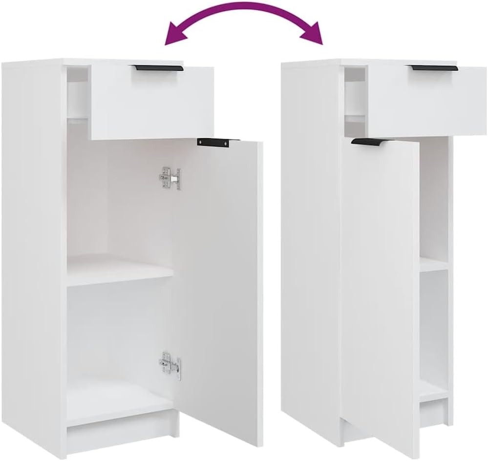 This stylish bathroom cabinet mixes function and flair, making it a fab addition to your bathroom while helping you keep your essentials organized and within reach. With its sleek white finish and simple lines, this cabinet fits with all sorts of decor styles, creating a chill vibe that's perfect for relaxation.Sleek Design: The cabinet's got a modern look with a matte white finish that’s stylish and right on trend. Its simple lines and smooth texture make it a fabulous fit for minimalist bathrooms.Sturdy Construction: Made from top-quality engineered wood, this unit is built to last. Its strong design ensures it stays tough while being easy to clean, giving you a practical piece that holds up to daily use.Space-Saving: Made for optimal space use, this wall-mounted cabinet keeps your floor free and tidy, perfect for smaller bathrooms. It comes with mounting points and is easy to install for a streamlined effect.Generous Storage: With a good-sized drawer and a hinge door, this cabinet has loads of storage, letting you keep your bathroom bits organized and easily reachable while cutting down on mess.Easy Care: Keeping it looking good is simple; just wipe it down with a damp cloth. Be sure to secure it to the wall for safety, especially in busy homes. Color: WhiteShape: RectangularMaterial: Engineered woodFinish: MatteIndoor/Outdoor: Indoor OnlyNumber of Doors: 1Cover Included: NoRoom: BathroomCapacity: Loads of storage space with 1 drawer and 1 doorMaximum Number of People: 1Mounting Included: YesDimensions: 12.6 x 12.6 x 35.4 in (W x L x H)Weight: 37.04 lbsSwings: NoDelivery Contains: Bathroom cabinetAssembly Required: YesRecommended Number of People for Assembly: 1