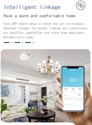 Specification:Wifi Standard: 2.4GHz IEEE802 b/g/n Color: White Material: ABS Working Voltage: USB 5V, 1A Working Current: 10-496mA Working Temperature: -20-85℃ Formaldehyde Range: 0-10.00mg/m³ VOC Range: 0-99.9ppm CO2 Range: 0-1000ppm Temperature Range: 0-60℃ Humidity Range: 0-95% Packing List: 1 * Smart Air detector 1 * USB Power Cord 1 * User's Manual Control Mode:APP/ManualSize: 90*90*35mm