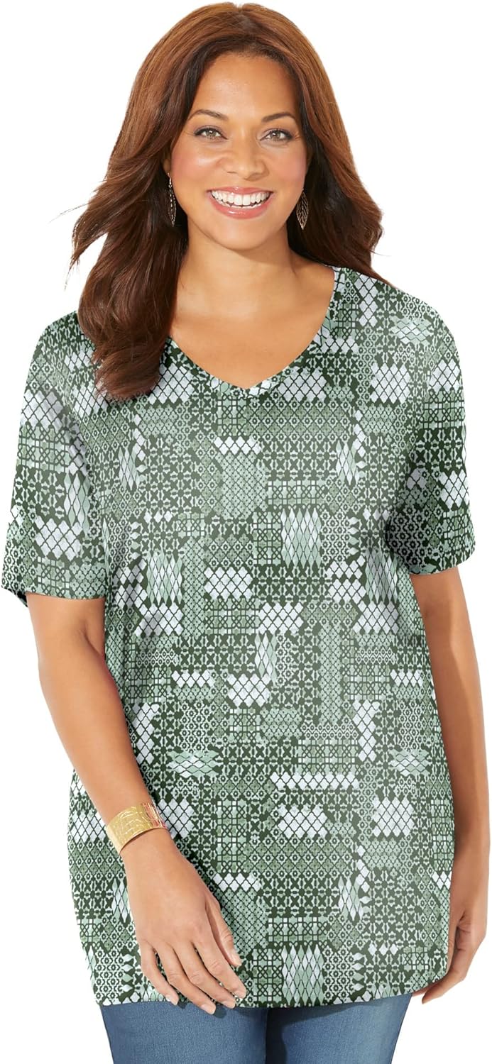 Your favorite easy tee in an easy fit. Our Easy Fit tunics are designed with a more generous fit and longer length for you comfort-lovers. Pair them with jeans, leggings, and yoga pants for pure ease and comfort from head to toe. FABRIC: Pure cotton knit that's soft, smooth, and breathable.FIT: A fuller silhouette with a longer length for added comfort and ease. V-neckline. 3/4 length sleeves. Side slits at hem. This style runs large. If you are in between sizes, we recommend sizing down. 100% Cottonbr>Machine wash cold. Delicate cycle. Wash colors separately and inside out. Use only non-chlorine bleach. Tumble dry. Iron on low.br>Imported Plus Size Topbr>Front Length: Regular 34", Petite 32"br>Plus Sizes 0X-6X, Petite Plus Sizes 0XWP-3XWPbr>Catherines