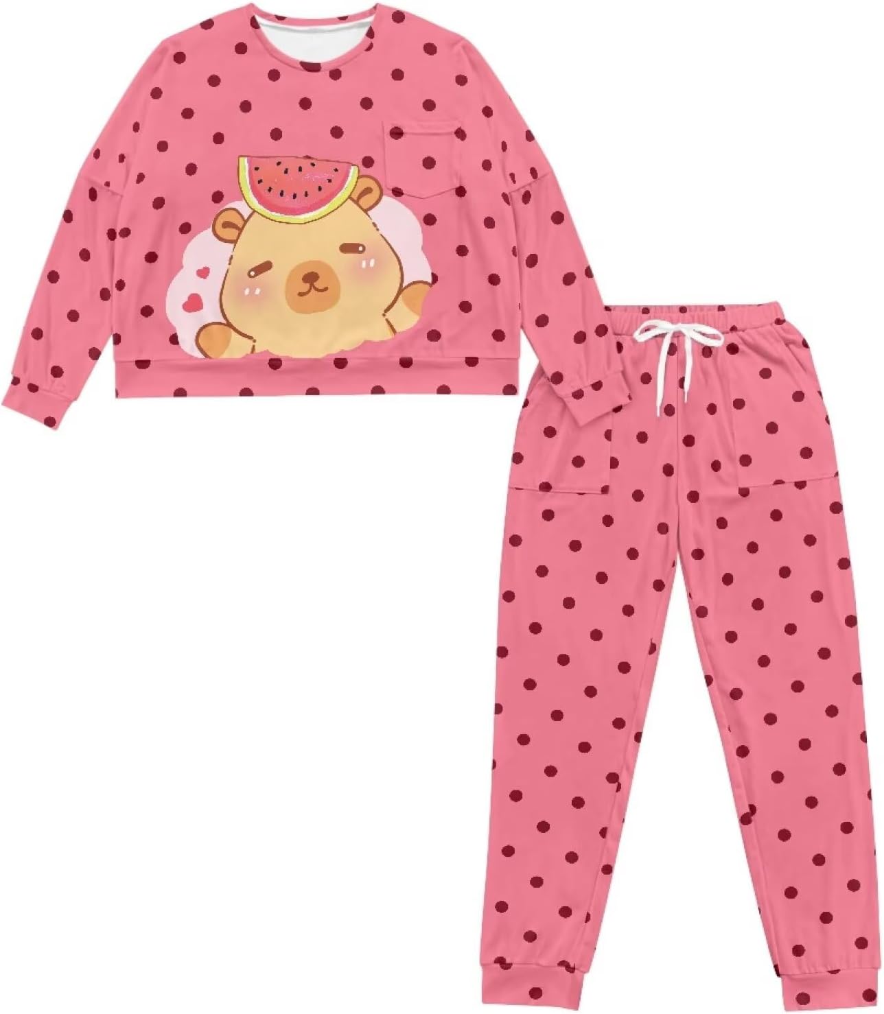Oamsistay Women's Fashion Pajama Sets Long Sleeve Shirt S-2XL Floral Pajamas Set Soft PJ Loungewear Sleepwear Casual Printed Loungewear Combining casualness with practicality, this set is the ideal choice for warm evenings, lazy weekends, or relaxing days. With breathable fabrics, a chic aesthetic, and thoughtful details, it redefines casual loungewear. Sizes: Bust*Waist*Hips* Top Length * Length S: 43.3'' * 25.2'' * 40.6'' * 22.4''* 41.7'' M: 45.7'' * 26'' * 42.9'' * 22.8''* 41.7'' L: 48.4'' * 28.7'' * 45.3'' * 23.2''* 42.1'' X-L: 50.8'' * 31.1'' * 47.6'' * 24''* 42.5'' XX-L: 53.1'' * 32.3'' * 50.4'' * 24.4''* 42.9'' Packags: Tops*1 & Pants *1 Features: Multi Occasions to Wear: Sleeping, Leisure, Home Wear, Dating, Street, Daily Wear, Walking and Walking the Dog and Vacation etc. Fashion Printed: The prints on the pajamas set are mainly daily themes such as florals, butterflies, hummingbirds, flowers, leaves, dragonflies, cats, dogs, etc.