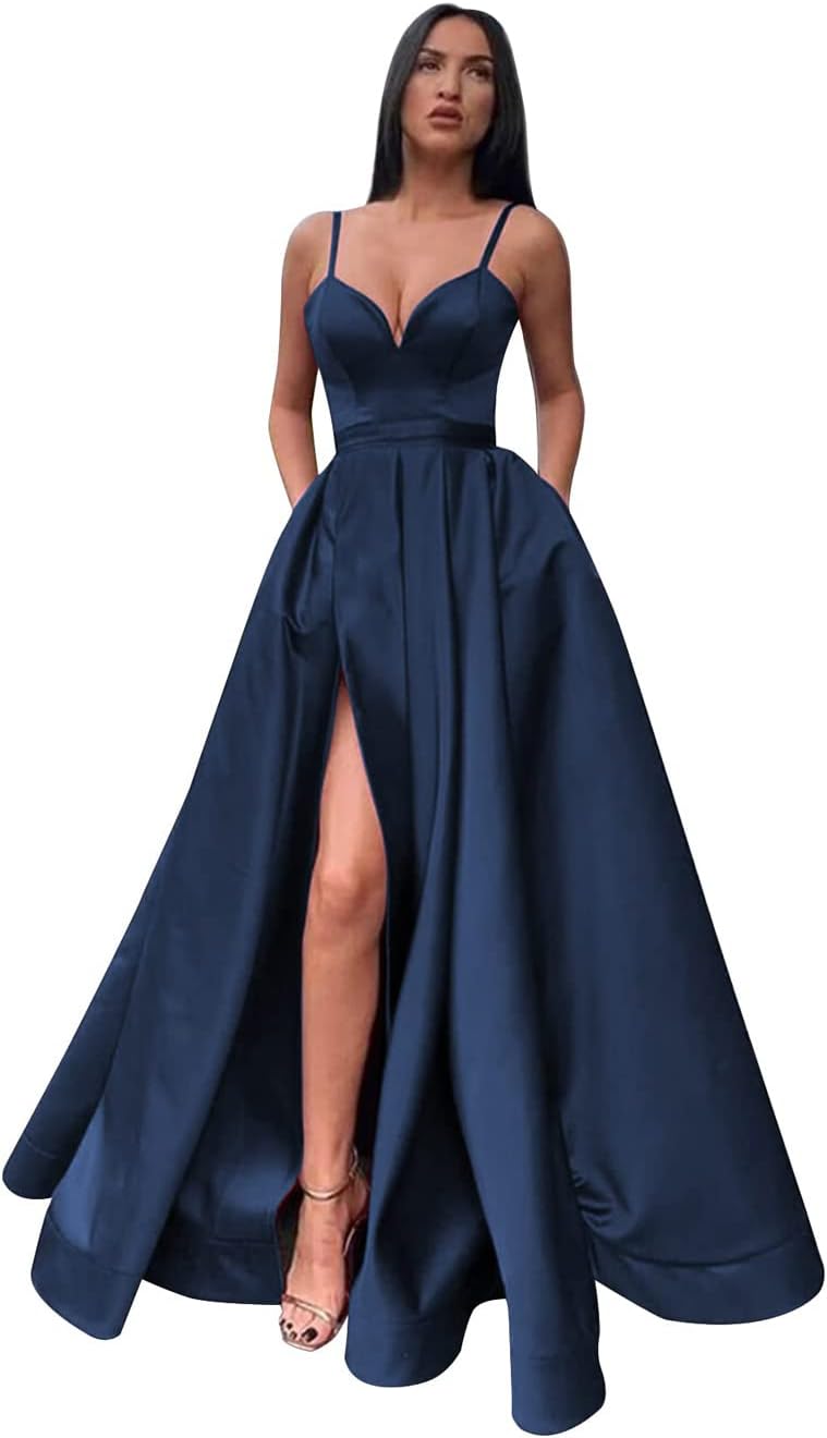 Welcome to Xjizu Store for shopping:Hand-made and Gorgeous design makes the dress perfect for prom,evening party,ball gown,wedding,bridesmaids,engagement,military ball,black tie,quinceanera,graduation ceremony,birthday party,Beauty Pageant party and other formal or semi-formal special occasions.High quality material gives you comfortable feeling!Fabric: SatinDesign: Slit,with pocketsSilhouette:A LineDresses Length:Floor LengthBack: Lace-upNeck: Sweetheart Neck with spaghetti straps. Features: This prom dresses long ball gown features sweetheart neckline,spaghetti straps,sexy high slit/split, side pockets,adjustable lace up back, sleeveless,built in bra and full length. Ideal gift for your family, lover, friend and yourself.For accurate measurements of Bust, Waist, Hips and Hollow to Floor, please kindly refer to our Size Chart Picture.Custom is available,please reference our measure method on the left and send us follow information.1.Full Bust ___ inch or ___ cm2.Waist _____ inch or ___ cm3.Hips _____ inch or ___ cm4.Shoulder to Shoulder ____ inch or ___ cm5.Waist to floor ____ inch or ___ cm6.Hollow to waist(Front Length Shoulder to Waist) _____ inch or ___ cm7.Hollow to floor(Shoulder to Feet without in shoes) ___ inch or ___ cm8.Height: _____inch or ___ cm9.The height of your high heel shoes: _____inch or ___ cmYou can tell us your specific size, before or after your order.Note:1. The real color of the item may be slightly different from the pictures shown on website caused by many factors such as brightness of your monitor and light brightness.2. Please allow slight deviation for the measurement data.