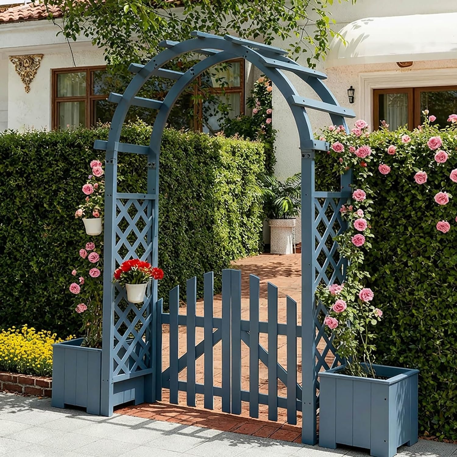 This garden arch made of wooden slats, forms a unique rustic garden gazebo with a fence and door. Equipped with a latch, it meets all your needs for your garden and patio.Product Name: Garden ArchMaterial: Solid woodSize: 1.2m , 1.4m , 1.6mColor: White , Yellow , Brown , BlueWith fixing accessoriesUse: for indoor or outdoor usePackage Includes:1x Garden Arbor2x Planter Box1x Fence gate