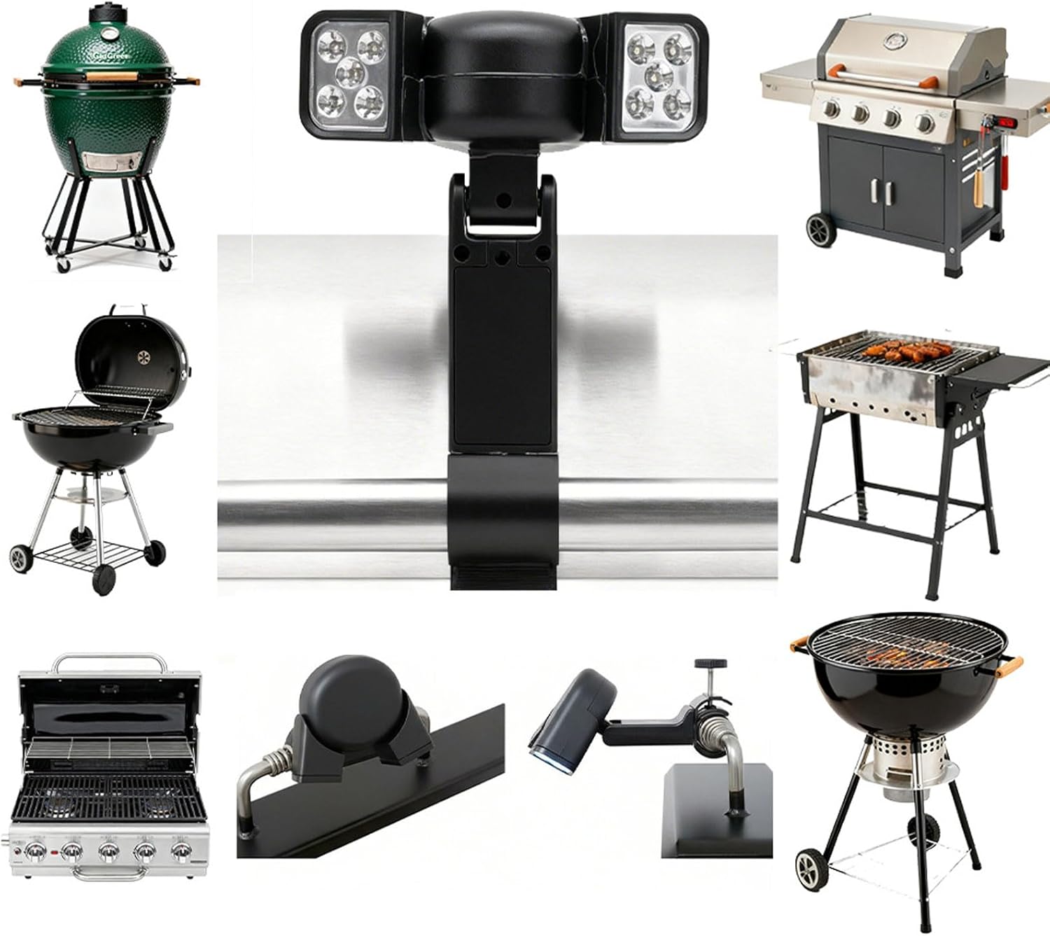 1. Adjustable Grill Light: This grill lamp features a 360° rotatable and bendable head with 10 F5 LED beads, delivering 100LM bright light for no shadow illumination. The ABS+PPS construction withstands -20℃ to 55℃, while the 1W setup ensures extended outdoor use. 2. Versatile Spotlight: The grill BBQ lamp spotlight's aluminum alloy bracket allows flexible positioning on any barbecue rack. Its oil proof touch switch works even with gloves, making it ideal for camping, night markets, or backyard gatherings with effortless cleanup. 3. Accuracy Lighting: Designed as a LED BBQ light, it accurately renders food textures with uniform brightness. The compact design attaches to grill handles or stands alone, ideal for portable use in fishing trips, picnics, or food stalls. 4. Robust Construction: Crafted from heat resistance ABS+PPS, this barbecue light resists grease and dust. The flush mounted switch prevents debris buildup, and the included simplifies battery replacement for uninterrupted grilling sessions. 5. All Weather Performance: BBQ spotlight operates reliably in diverse environments. The 10 LED beads provide consistent luminosity, suitable for tents, patios, or commercial setups requiring steady illumination. Specification: Item Type: LED BBQ Light Light Count: 10PCS F5 Color: White Light Battery: 3PCS AA Battery (Batteries Not Included) Power: 1W Luminous Flux: 100 LM Material: ABS PPS+Aluminum Alloy Operating Temperature: -20℃-55℃ Accessories: Product Features: 1. 10PCS High Brightness F5 LED Beads 2. Heat Resistance Aluminum Alloy Bracket Product Application: Suitable for outdoor BBQ, picnics, camping, fishing, and tent lighting in dark environments. Weight: Approx. 235.00g / 8.29oz How to Use: Ready to Use packing list: 1 x BBQ Light 1 x 1 x Instruction Manual Note: