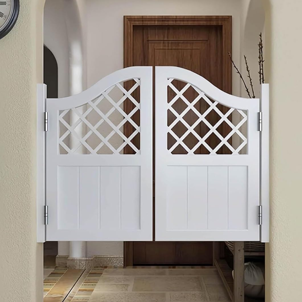 Welcome to YVYKFZD store:- The top of the double doors is designed with curved aesthetics, which is simple and elegant, and enhances the beauty of the space. It can be matched with any home decoration style, showing a quiet and elegant attitude to life- The solid wood interior front door comes with detailed installation instructions and accessories, so you can choose the installation position according to your needs and complete the installation easily. The package includes double opening doors, door frame x 2, hinges x 4 and other accessories● Product Parameters:- Product name: Fence door, partition door, front door, half-waist door, cowboy door, bar door, free door, half door, barn doors, double doors, louvered door- Material: Solid Wood- Assembly Required: Yes- Mount type: Door-mounted- Opening and Closing Range: 180°- Product size: W: 27~59.0IN, H: 35~39IN- Door Thickness: 3.8CM/1.5IN● Package Content:- 2 x Single Swing Door- 2 x Doorpost- 4 x Hinges (All Install Fitting Included)● Note:- Due to variations in screen settings, there may be slight color differences. Please refer to the actual product for accurate color representation- Due to different measurement methods, the error is generally 1-2 cm, and the error range is not within the quality range- If the size (width X height) and color you need is not in the above list, please contact us by email, we will give you a satisfactory answer and considerate service