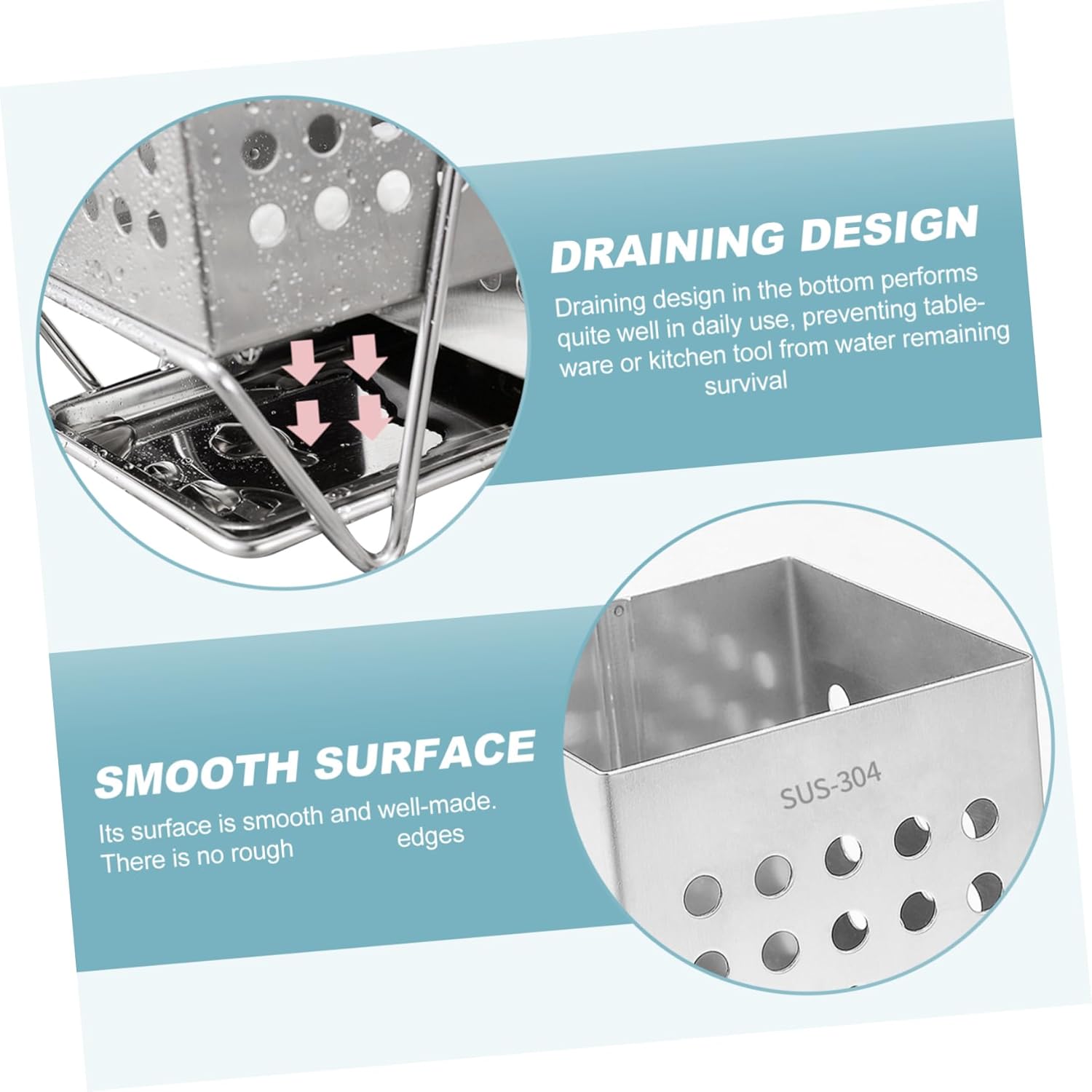 Package List 1 x chopsticks holder Features - Color: Silver stainless steel chopsticks holder. - Material: Stainless steel. - Size: Approx. 22.5 x 12.5 x 20cm. - Suitable for home, restaurant, dorm, canteen, store, camping, etc utensil organizer. - The bottom of the utensil holder has drain holes to keep , cutlery and chopsticks dry, growing draining tableware organizer. - It has nice apperance and will not take too much space multifunctional storage holder. - Made of material, , tough, and lightweight metal chopsticks holder. - Its surface is smooth and well-made. There is no rough or edges.Goods Descriptiondraining tableware organizer Draining design in the bottom performs quite daily use, preventing tableware or kitchen tool from water remaining and survival.stainless steel chopsticks holder want your clean and tidy? Are you worried about the in the kitchen? This chopsticks organizer will help you to solve the problem.multifunctional storage holder It is made of stainless steel material, which is for using