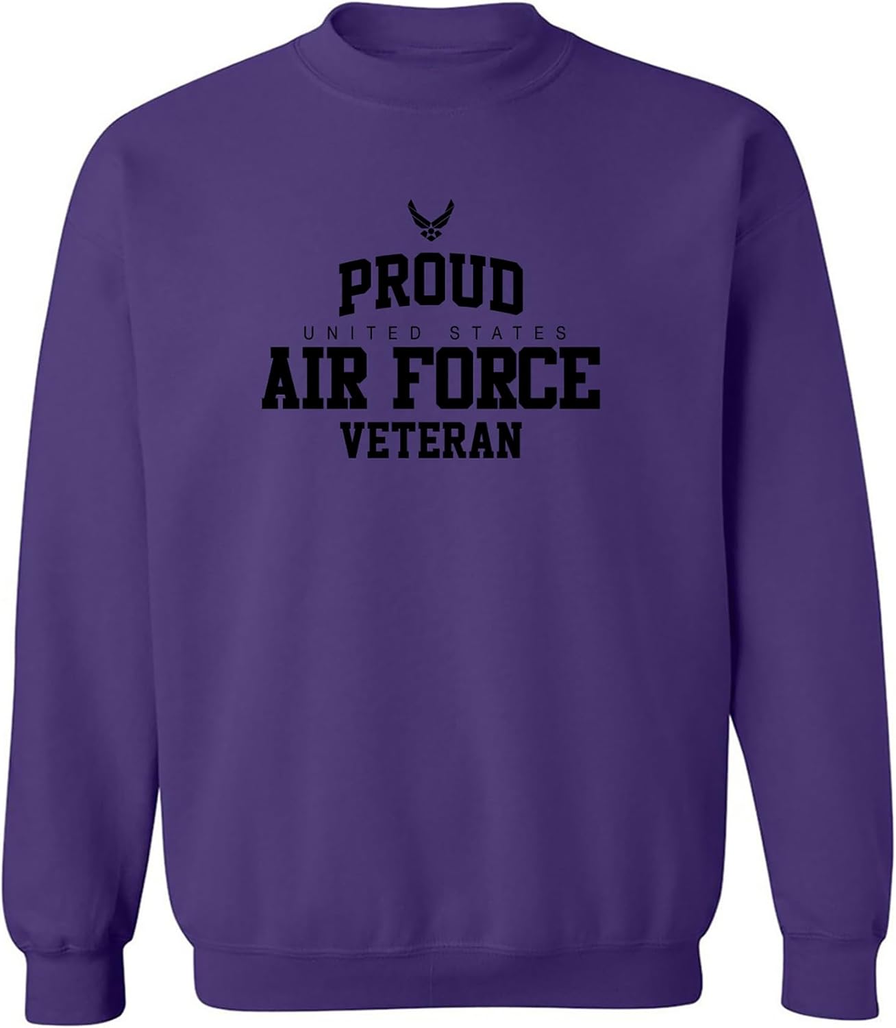 This military theme sweatshirt features "Proud United States Air Force VETERAN" on the front in black ink on an Adult Crewneck Sweatshirt. Made with a comfortable blend of 50% Cotton and 50% Polyester with a double-needle stitching for extra strength, our sweatshirts are designed for both comfort and quality. This garment is officially licensed by the United States Air Force. Printed in the USA on an imported garment.