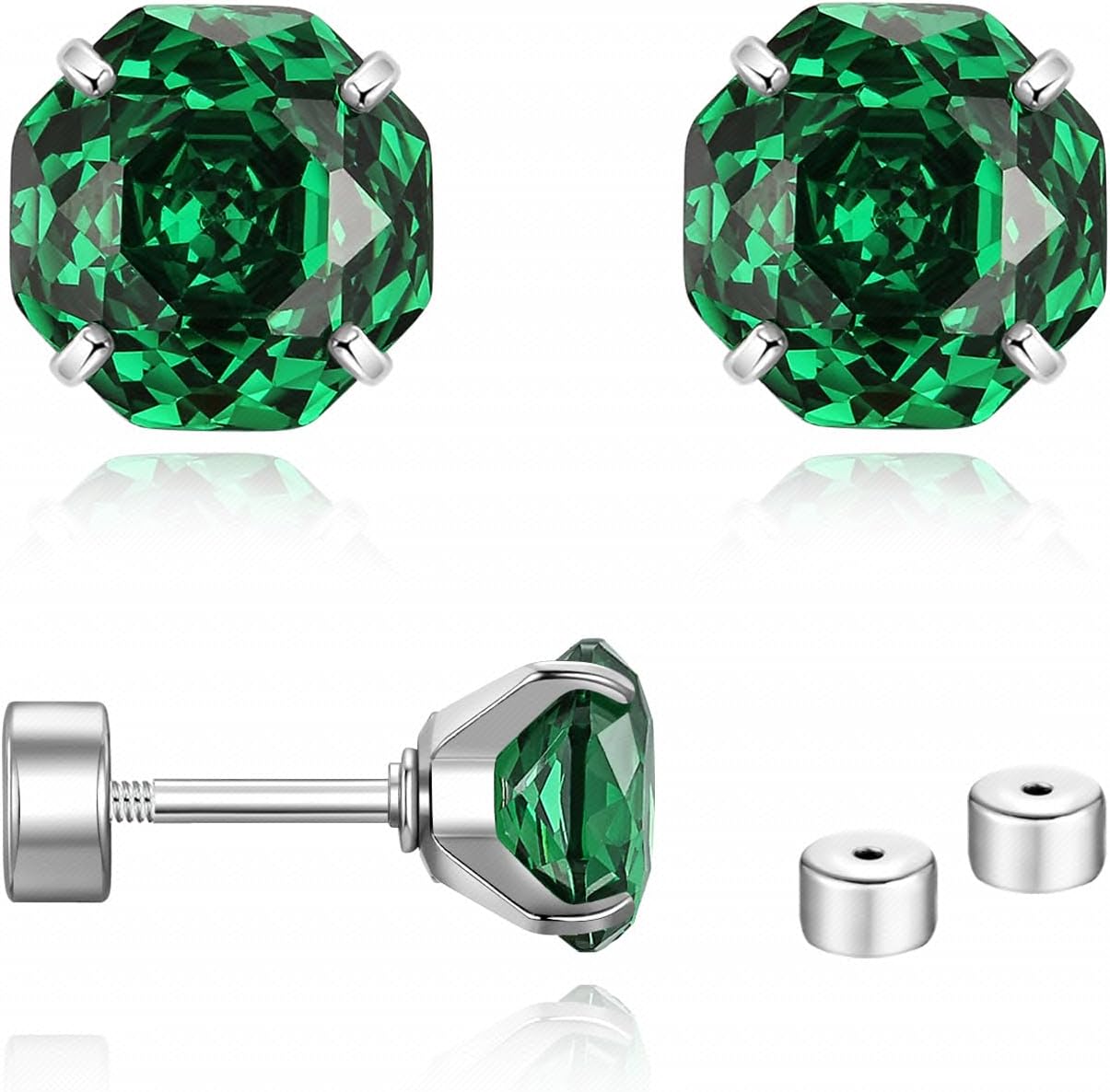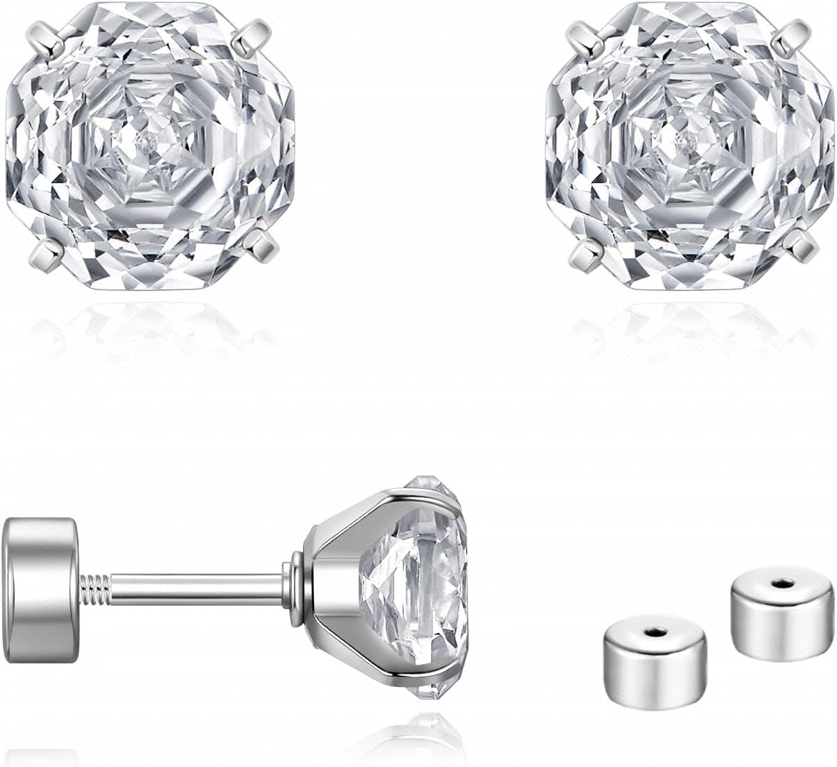 Zircon Gemstone Earrings These elegant earrings feature zircon gemstones, renowned for their exceptional brilliance and diamond-like fire. Gemstone Details: Shape: Rose-cut design with intricate facets arranged in a circular floral pattern, offering a sophisticated and timeless look. Clarity: Highly transparent, showcasing the premium quality of the zircon. Cut: Expertly polished facets enhance the stone’s brilliance and sparkle. Gemstone Diameter: 0.8ct - 6mm. Setting and Dimensions: Secure 4-prong setting for added stability. Earring Dimensions: 0.8mm Post diameter: 6mm length, suitable for standard piercings or cartilage. Material: Made from F136 surgical titanium steel, ensuring durability, hypoallergenic properties, and comfort for sensitive skin. No rusting over time. Design Features: Equipped with a screw flat back for a secure fit. Includes an extra adjustable flat back for flexibility and customization. Perfectly designed for both men and women, these versatile earrings are suitable for everyday wear or special occasions. Whether used as traditional earrings or cartilage piercings, they are the ideal blend of style and functionality.