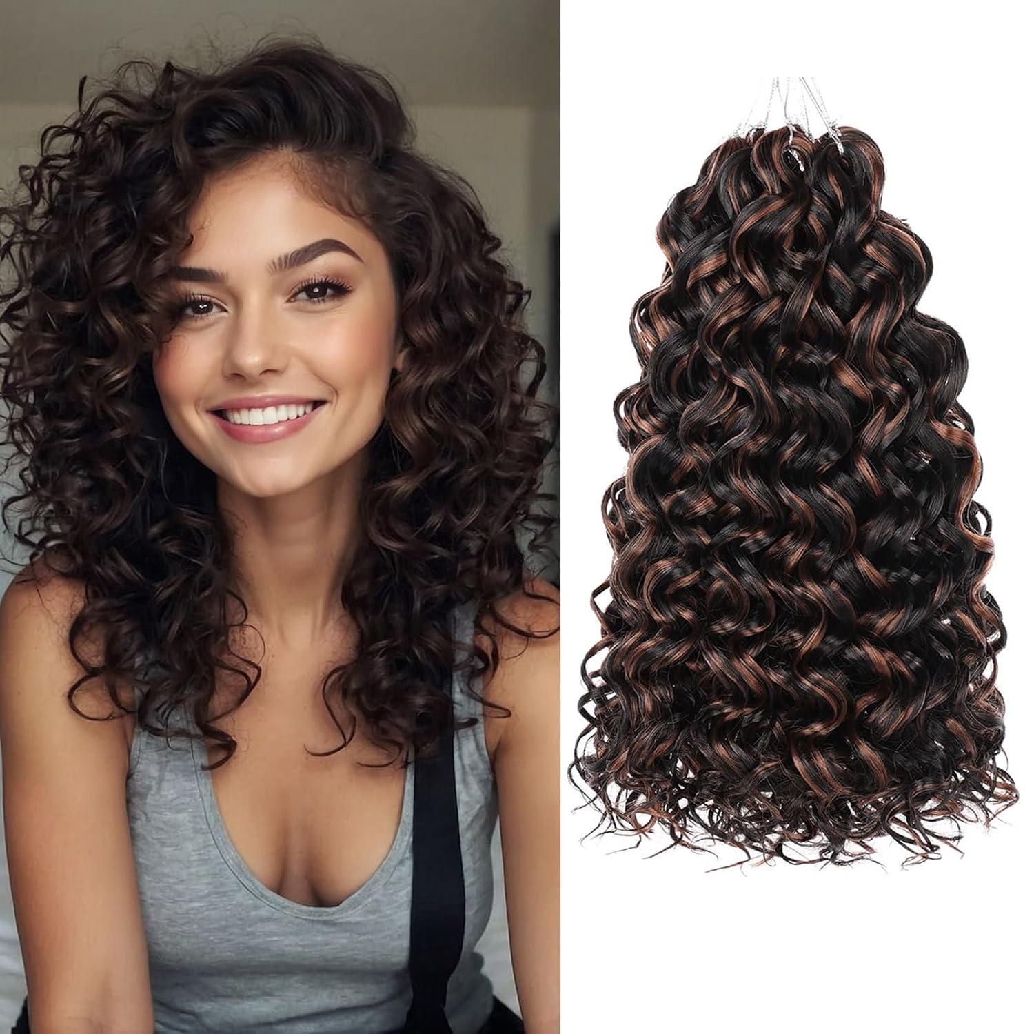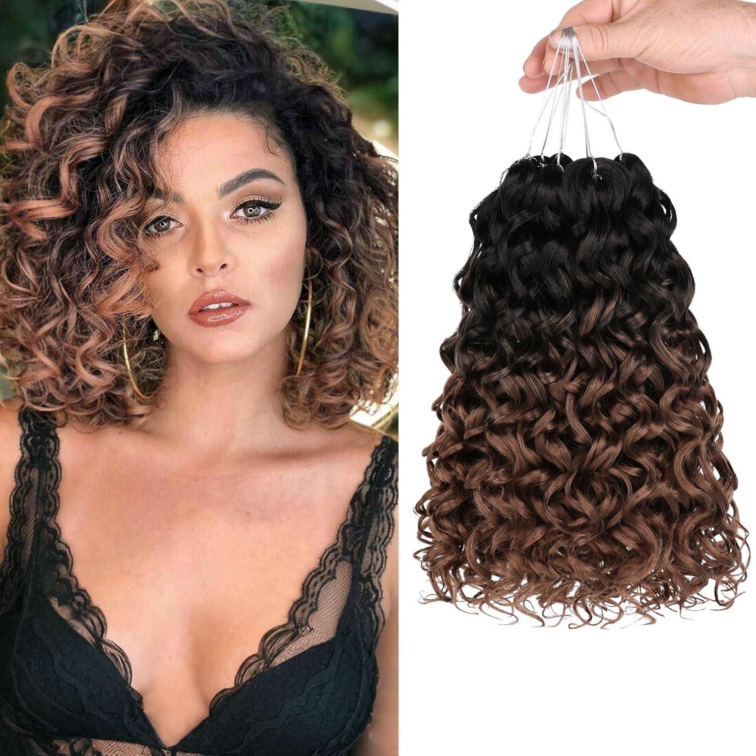 ZRQ 8 Packs GoGo Curl Crochet Hair 10 Inch Short Curly Crochet Hair T27 Natural Hairstyles Ombre Beach Curl Water Wave Deep Twist Crochet Braids Synthetic Hair Extensions(10 Inch, T27)